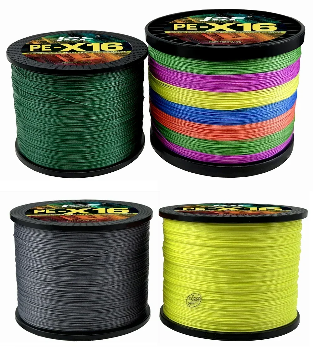JOF 8 hebras 9 hebras 16 hebras trenza resistente a la abrasión PE sedal súper fuerte antimordeduras 18-200LB herramientas de pesca 500M