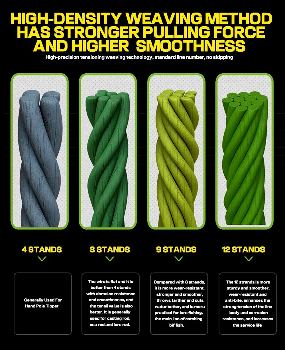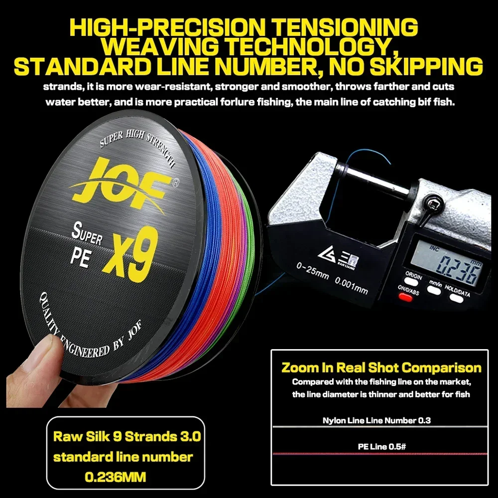 Línea de pesca de PE trenzada JOF UPGRADE X9/X12, 500M, 300M, 100M, hilo de pesca de carpa multifilamento, línea de pesca súper fuerte 9,0Kg-41,8Kg