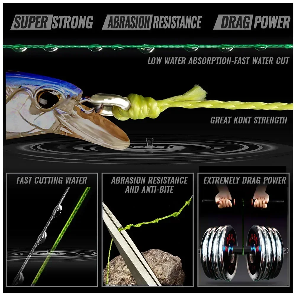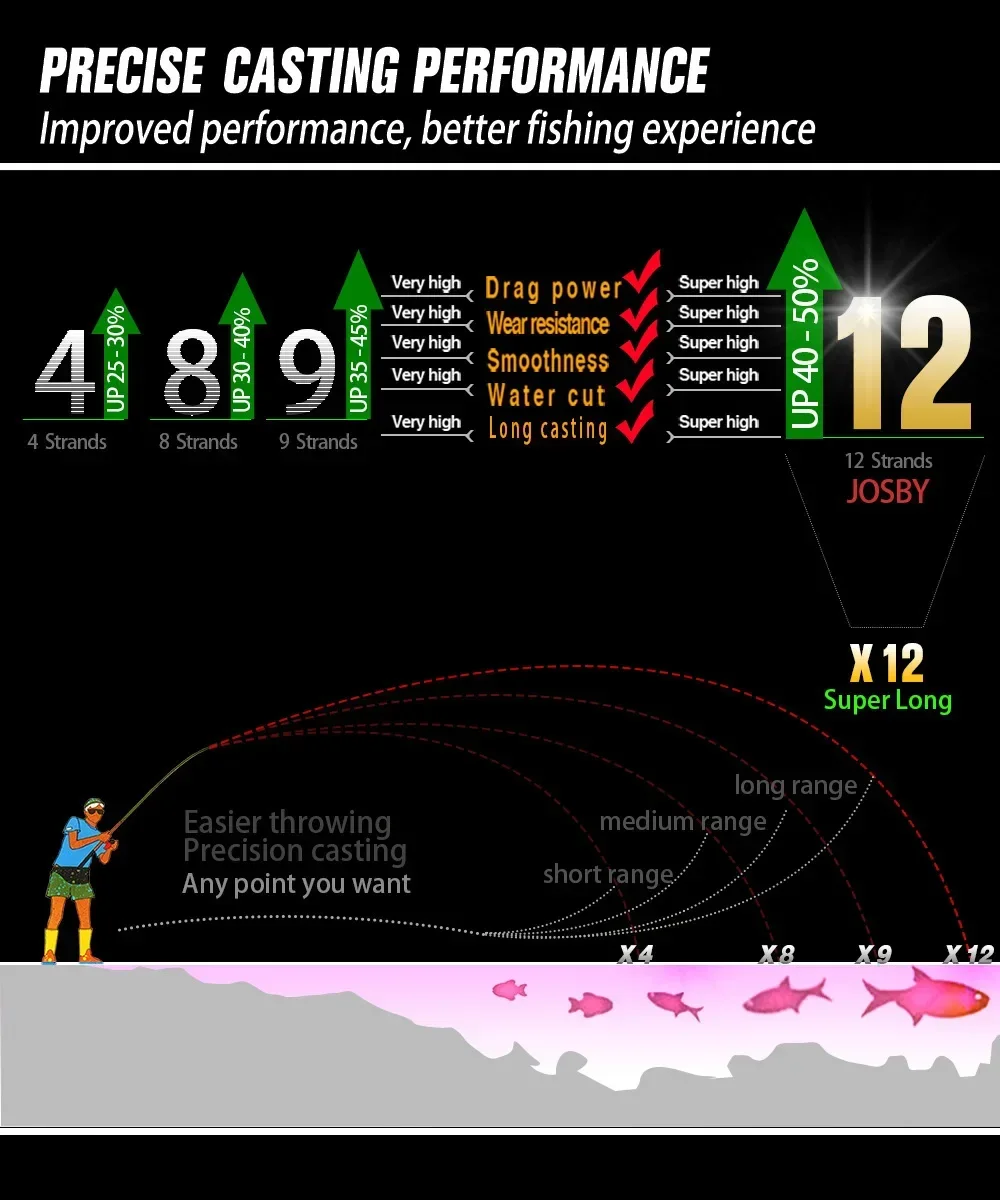 JOF-sedal de pesca trenzado de 12 hebras, 500M/564yd, PE súper fuerte, 25-120LB, suave, duradero, verde brillante, colores mezclados, carpa de tiro largo