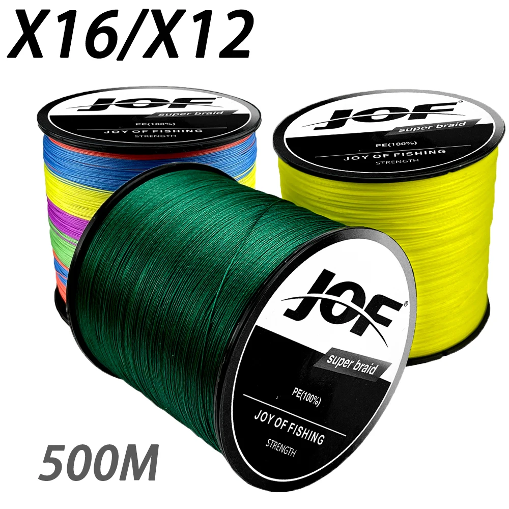 JOF-línea de pesca trenzada de 12 hebras y 16 hebras, 500M, multifilamento, cables de PE, agua salada, agua dulce, herramientas de aparejos de pesca 11,3 KG-91 KG