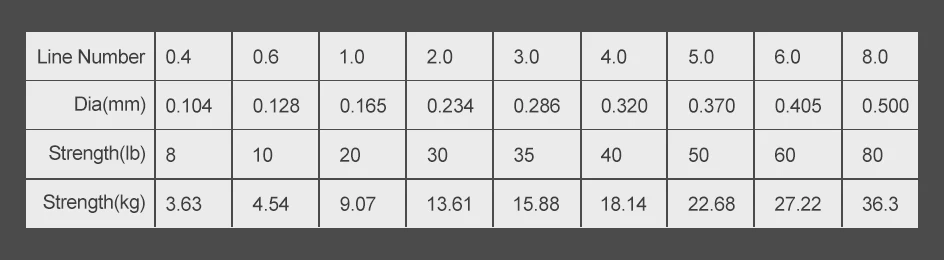 El número de línea no es el diámetro, comprueba la tabla cuidadosamente y déjanos un mensaje si hay algo confuso, ¡Gracias!
