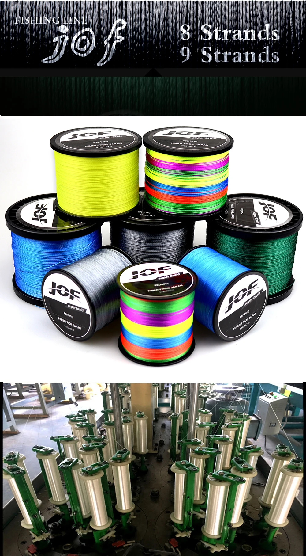 JOF 9 hebras 8 hebras 1000M 500M 300M PE línea de pesca trenzada tresse Peche tejido de agua salada