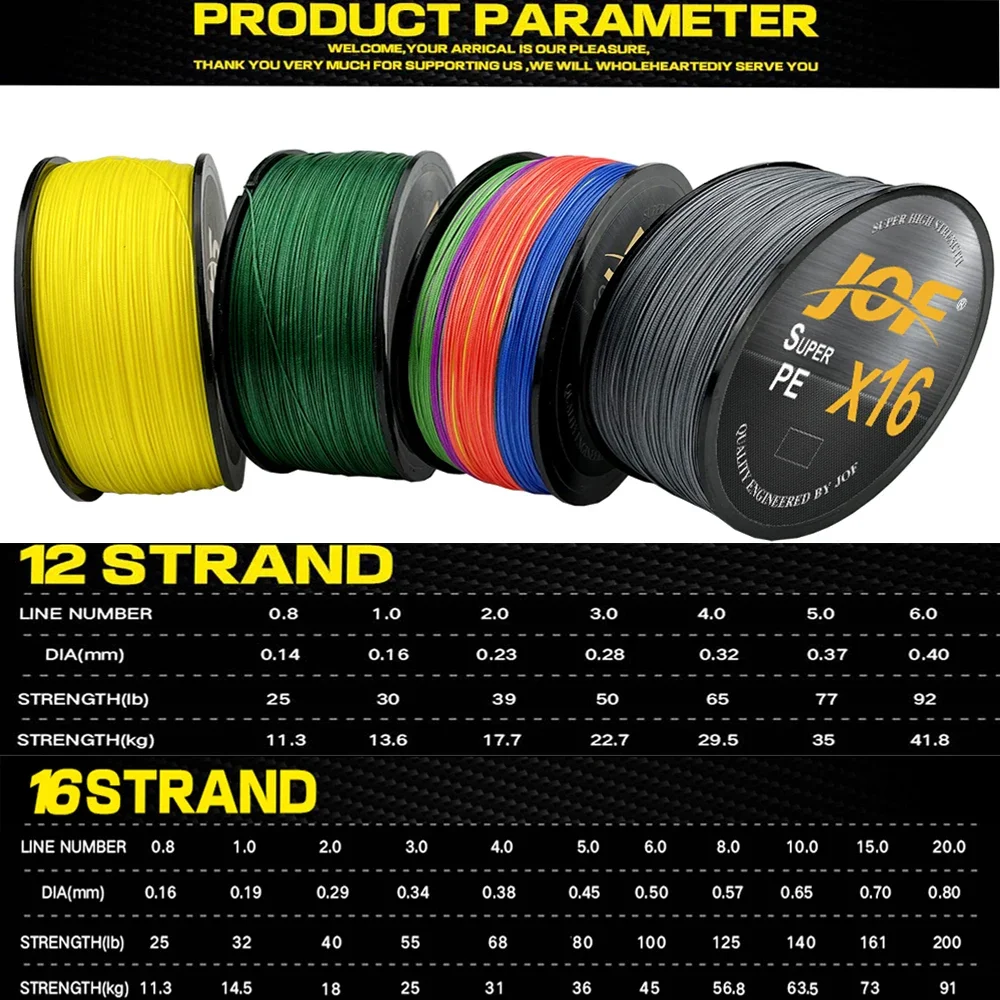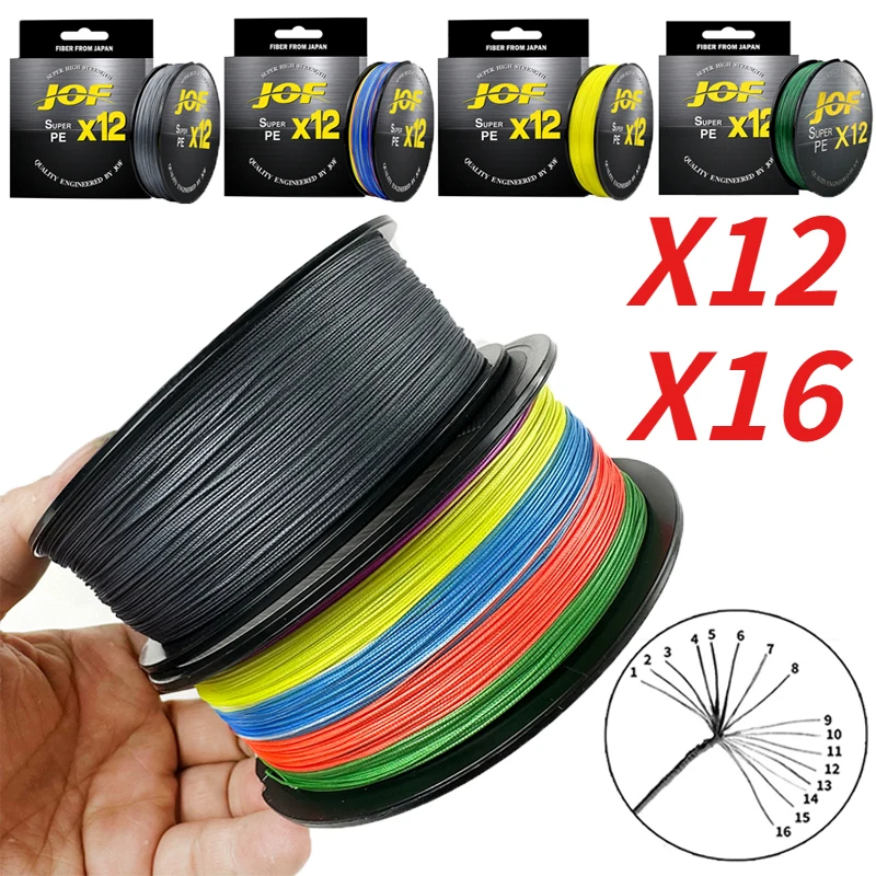 JOF-sedal de pesca trenzado duradero, multifilamento de 16/12 hebras, alambre líder suave y resistente al desgaste de 300M para aparejos de pesca de lubina y carpa