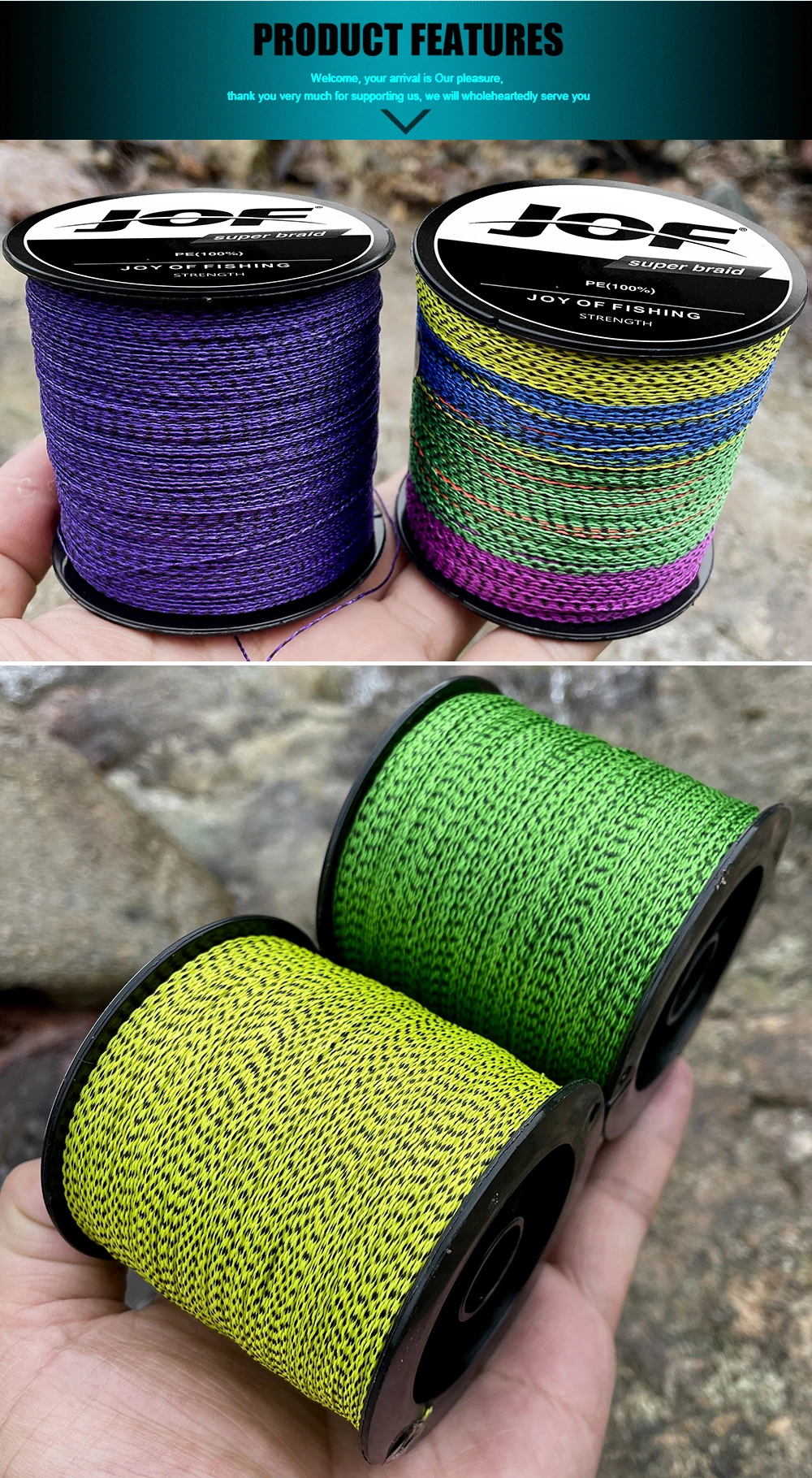 1: Línea de PE X4 Strands, construcción única de trenza moteada, hecha de fibras de PE de resistencia ultraalta.