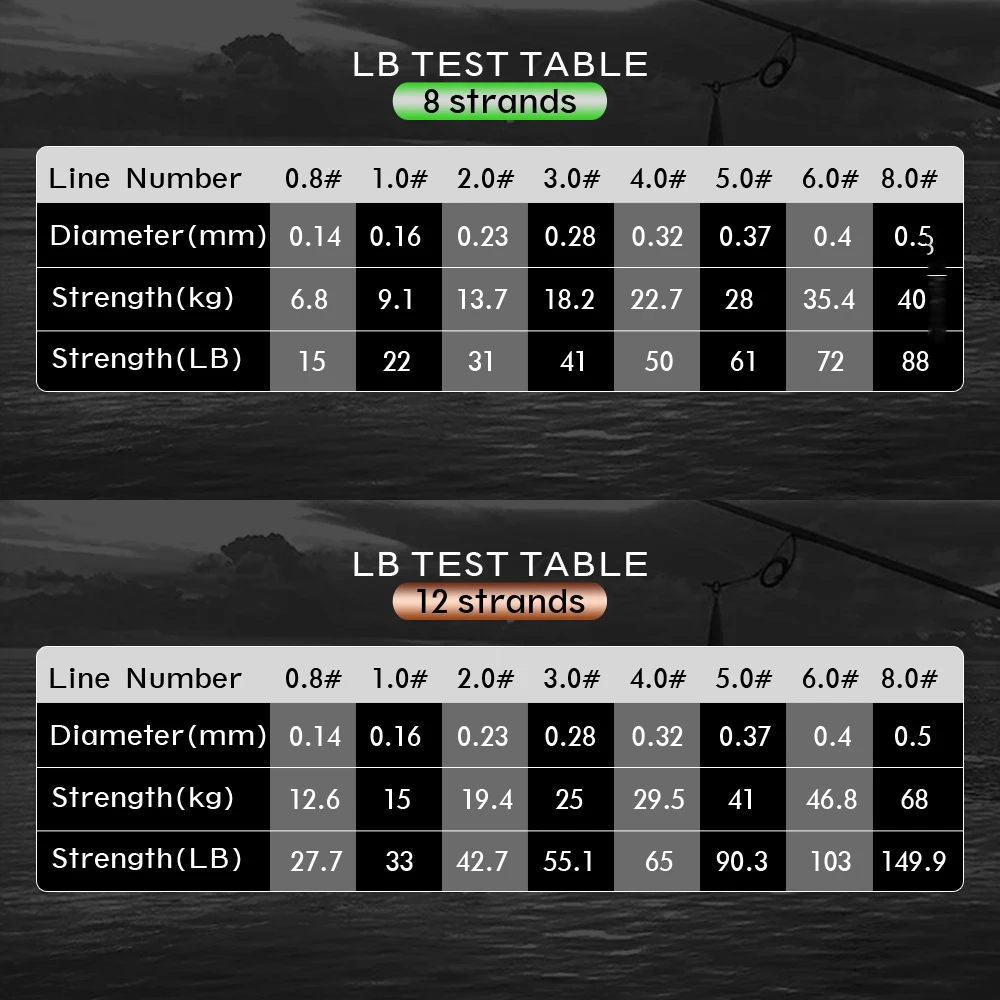 JOF 300M 500M 1000M 12 hebras 8 hebras súper fuerte PE trenzado línea de pesca multifilamento hilo teje 22LBS-149.9LBS