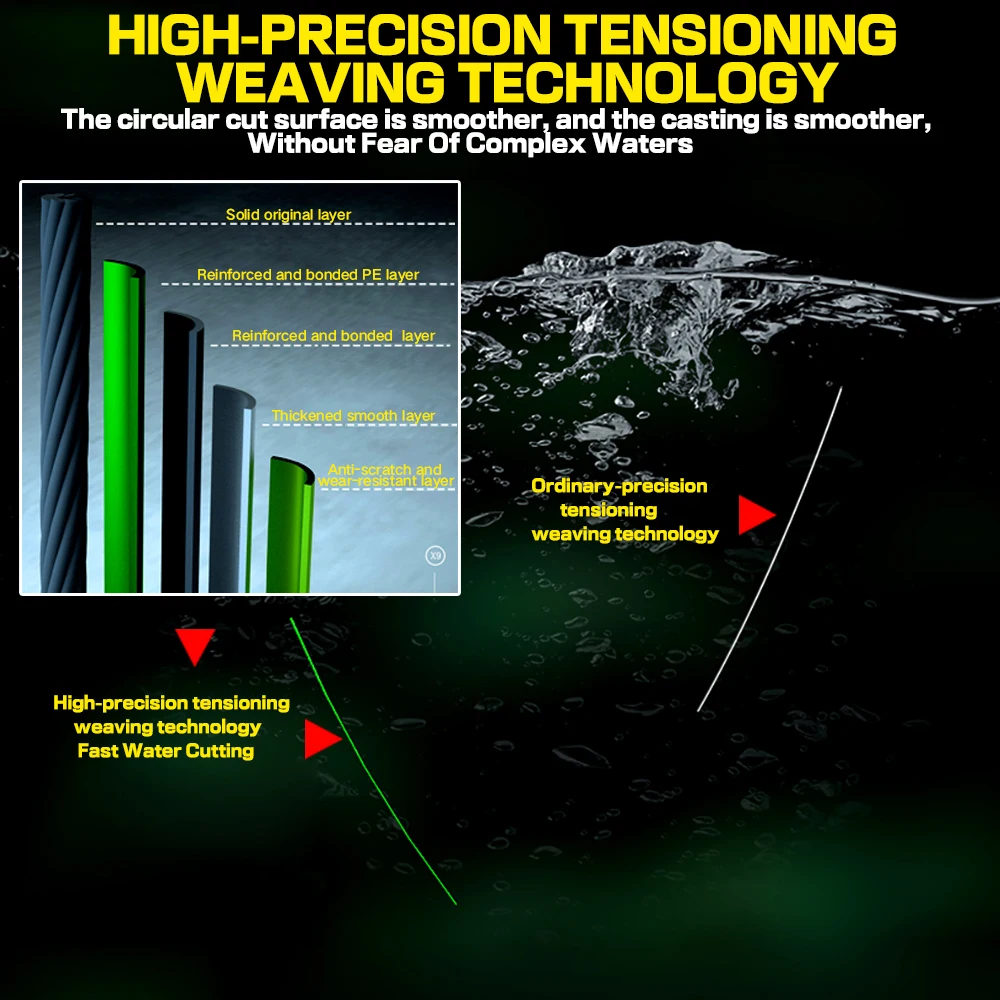 Línea de PE de 2: 9 hebras, construcción trenzada única, hecha de fibras de PE de resistencia ultraalta.