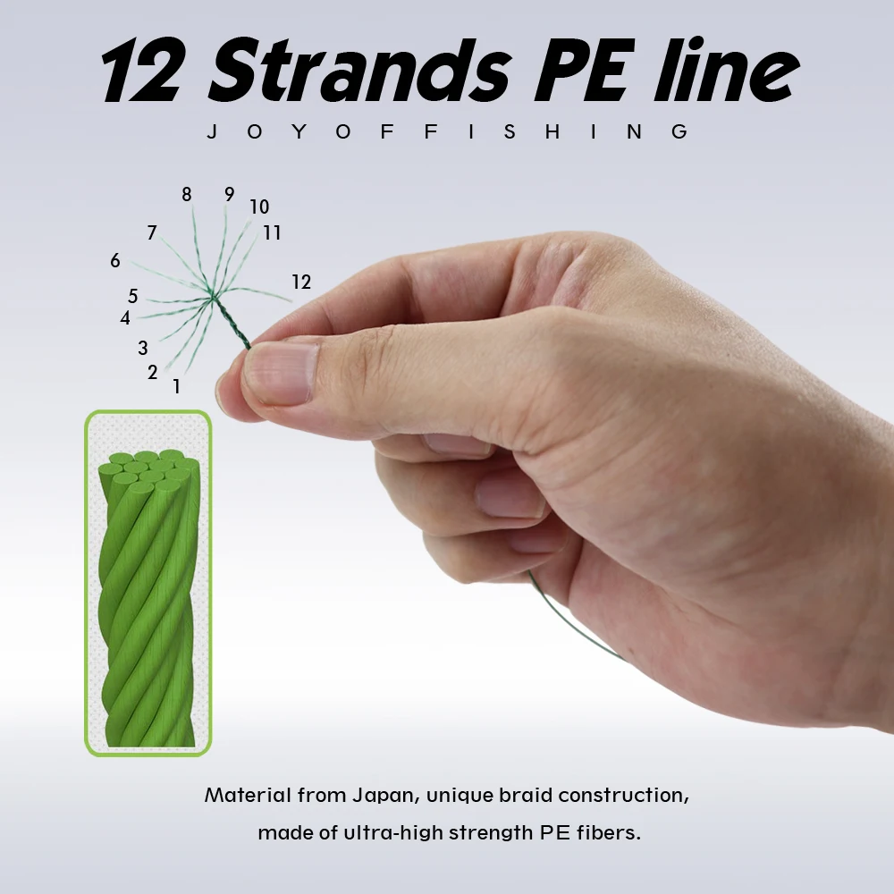 Línea de PE de 12 hebras, material de Japón, construcción trenzada única, hecha de fibras de PE de resistencia ultraalta