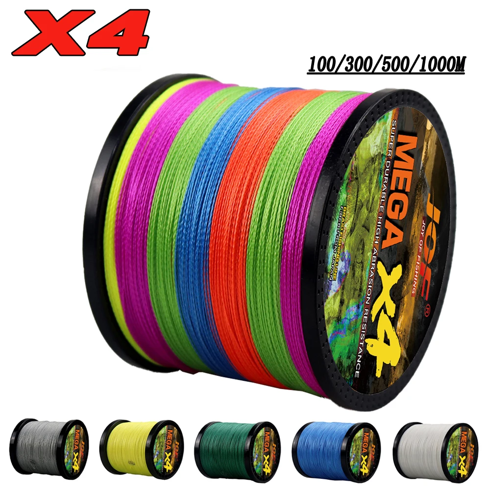 JOF-sedal de pesca trenzado X4 de 4 hebras, 100M, 300M, 500M, 1000M, multifilamento PE, 18-80LB, fuerte cordón japonés para pesca de carpa