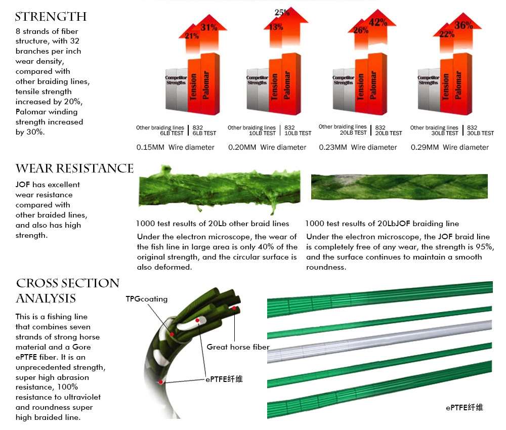 Resistencia a la abrasión: PE fuerte, Material japonés, resistente y duradero.
