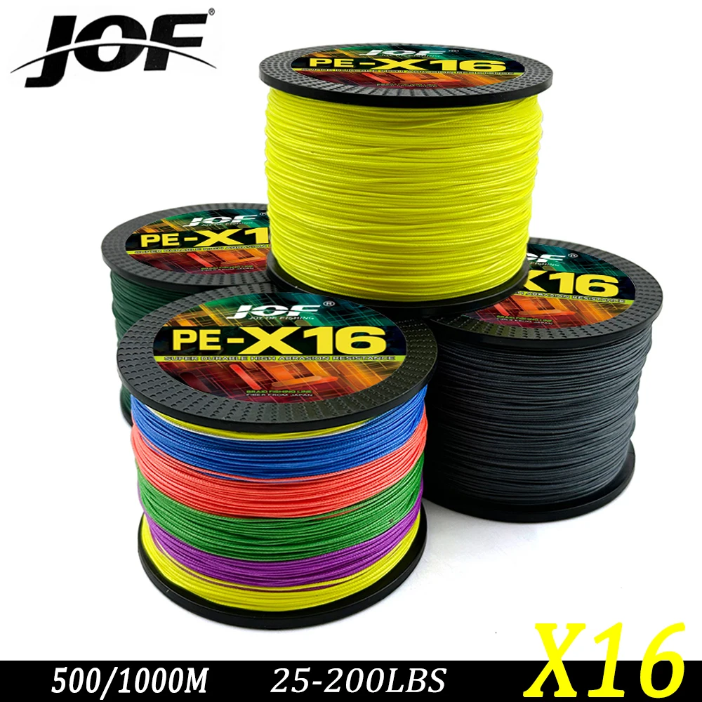 JOF-sedal trenzado de 16 hebras para pesca, hilo de pescar de 500M/1000M X16 multifilamento japonés para agua salada, núcleo de alambre X, pesca de carpa 25-200lb