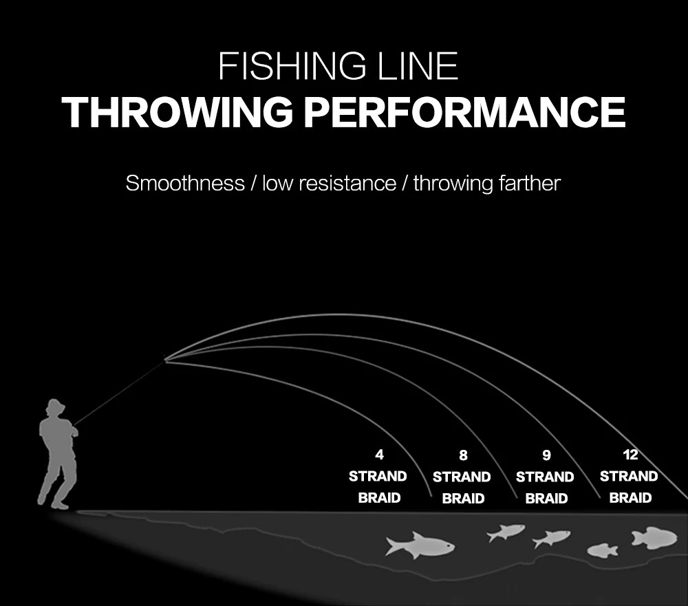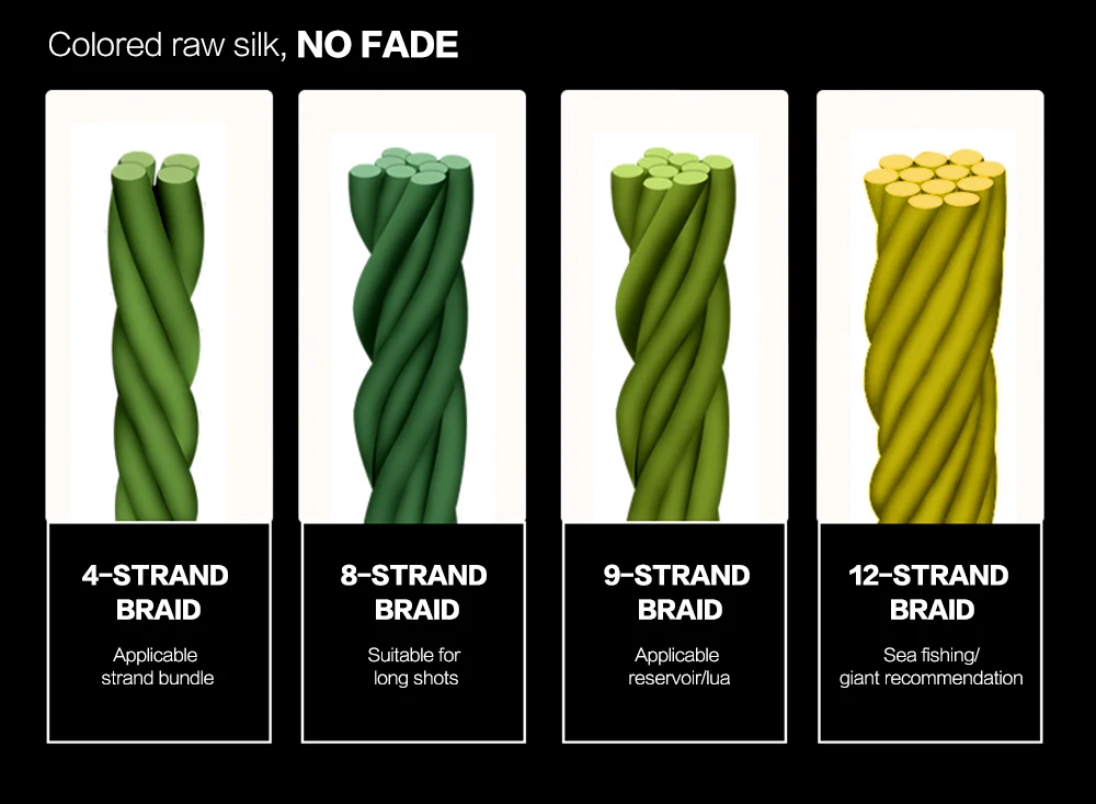 Línea de PE de 4 /8/9/12 hebras, material de Japón, construcción trenzada única, hecha de fibras de PE de resistencia ultraalta