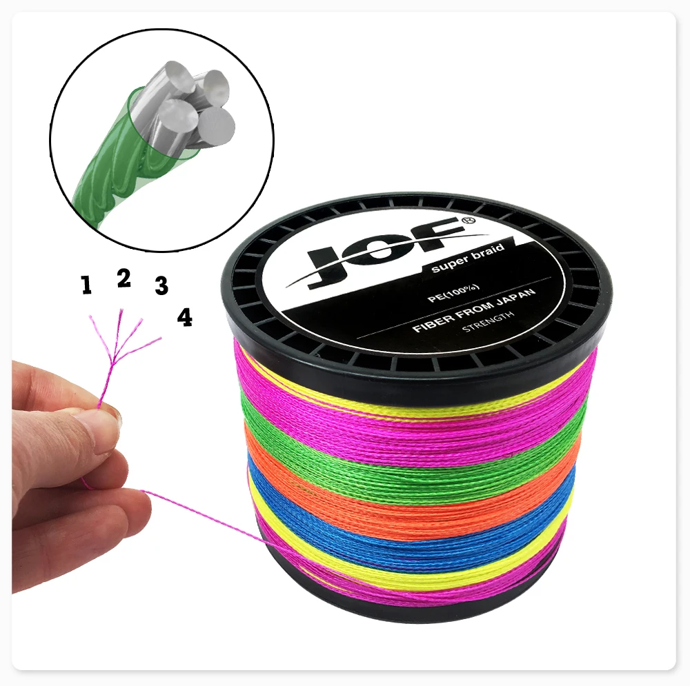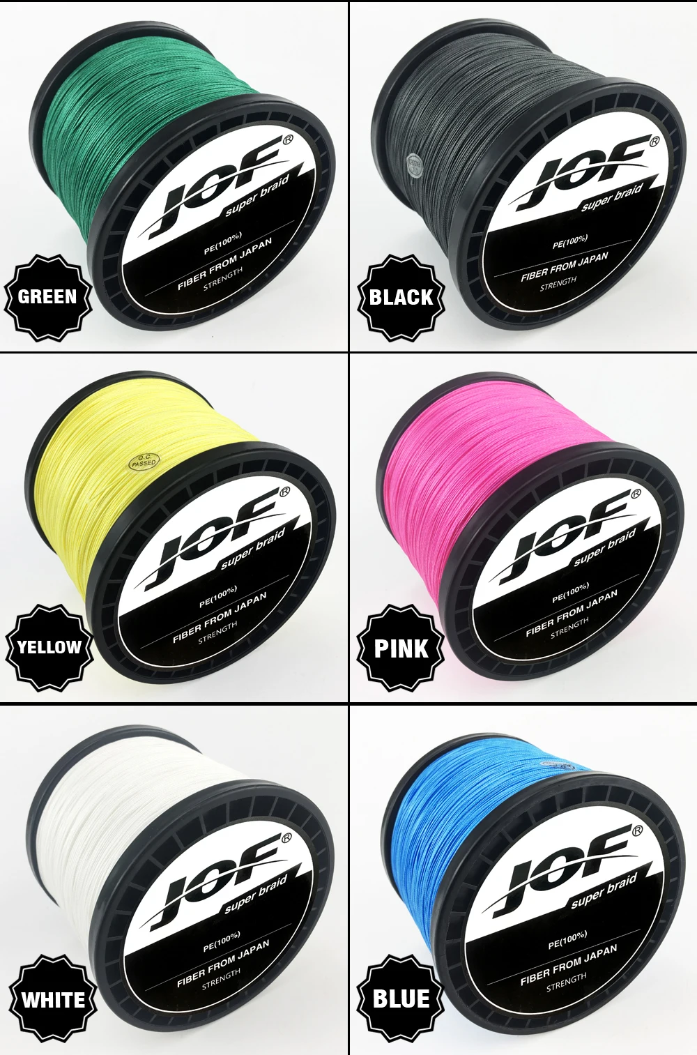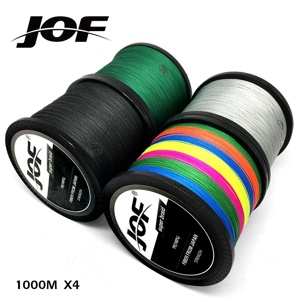 JOF-sedal trenzado de PE para pesca de carpa, multifilamento de 1000M, 4 hebras, para agua salada, 10, 12, 18, 28, 35, 40, 50, 60, 82 LB