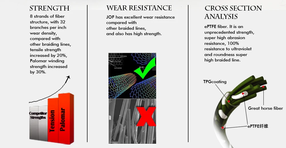 Línea de PE de 4 hebras, material de Japón, construcción trenzada única, hecha de fibras de PE de resistencia ultraalta