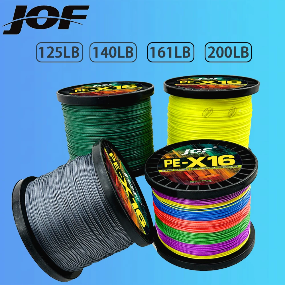 JOF Hilo de Pescar Trenzado de 16 Hebras Antimordedura Extremadamente Fuerte, Multifilamento X16 de Calidad Multicolor, Alambre Trenzado PE 125LB140LB 161LB 200LB 0,57mm-0,8mm