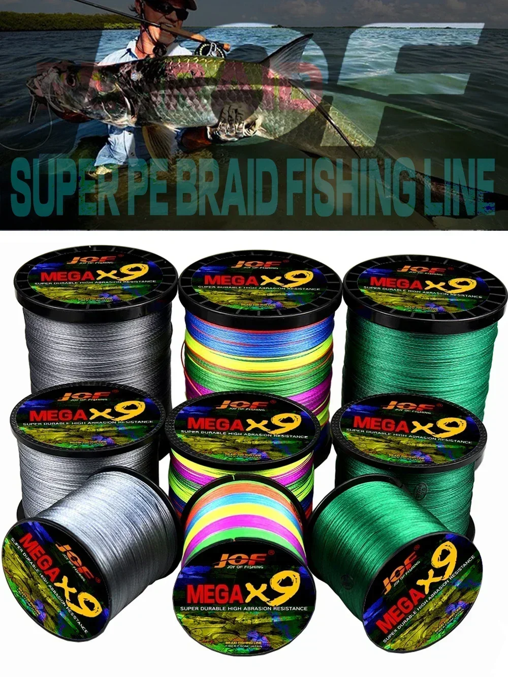 Línea de pesca de PE trenzada JOF X9/12 hebras de 100 m, resistente a la abrasión, señuelo multifilamento Hollowcore, cable principal de 0,14-0,55mm, 4 colores