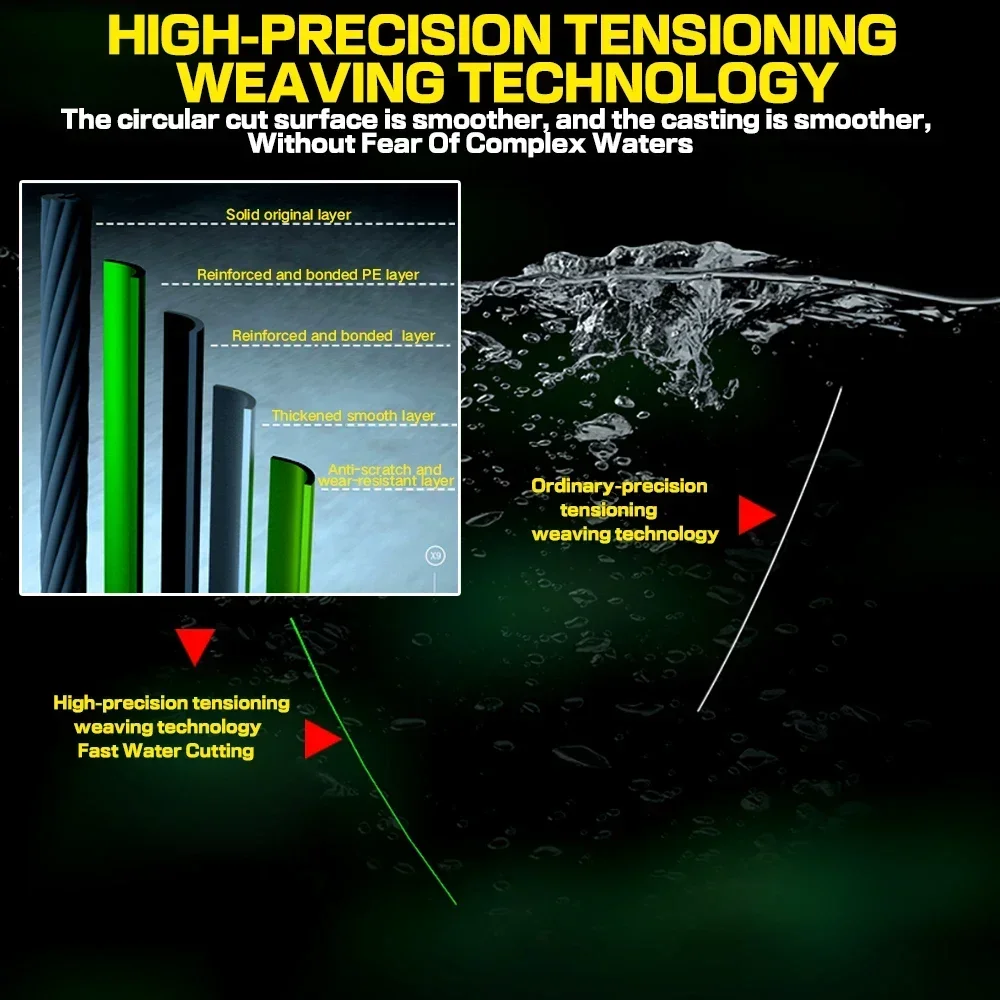 2: 9 Strands PE line, unique braid construction, made of ultra-high strength PE fibers.