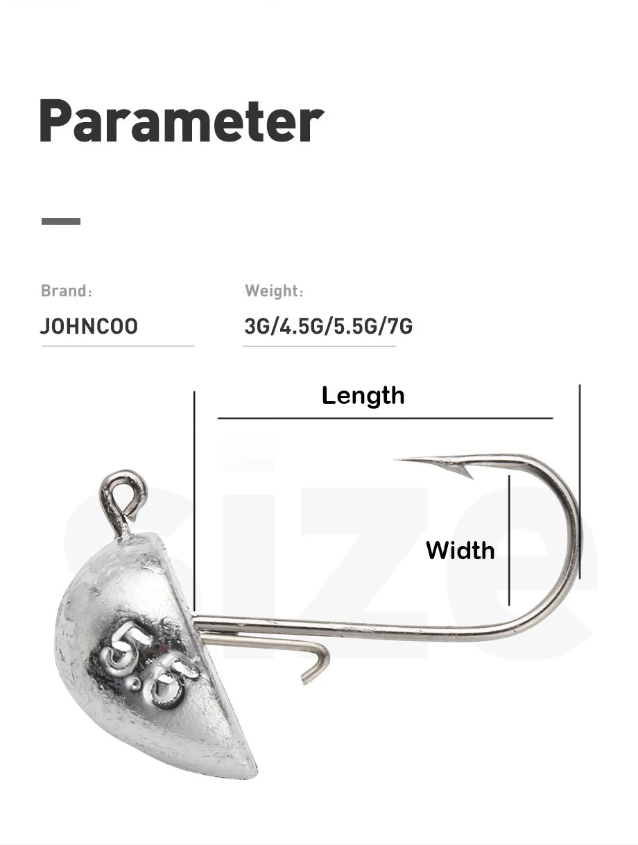 JOHNCOO 10 Uds. Anzuelos de plantilla con cabeza de plantilla 3g-7g, anzuelos de pesca de agua dulce y salada para trucha y lubina