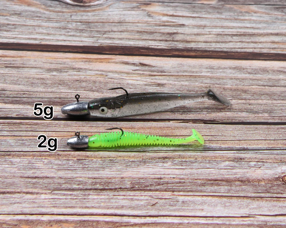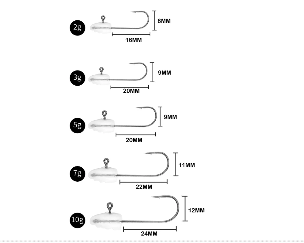 JOHNCOO-anzuelo de cabeza suave, señuelo de gusano, anzuelo de pesca vertical, 2g, 3g, 5g, 7g, 10g, 10 Uds.