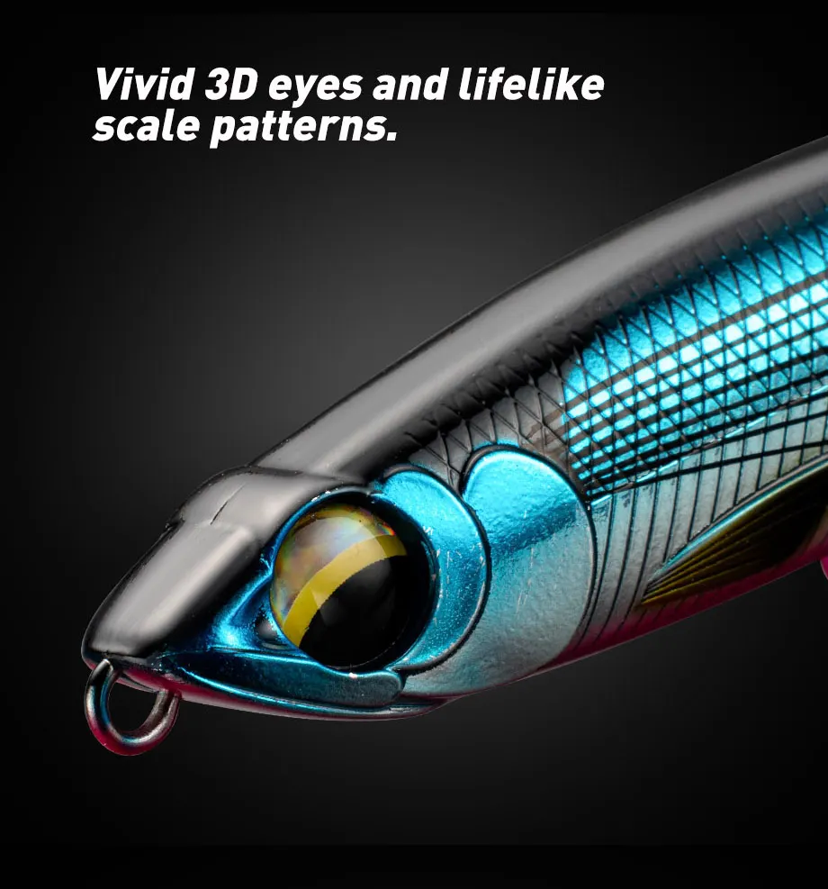 Señuelo de lápiz clásico con ojos 3D y escala de efecto láser.Atrae a los peces reflejando luces desde todas las direcciones.