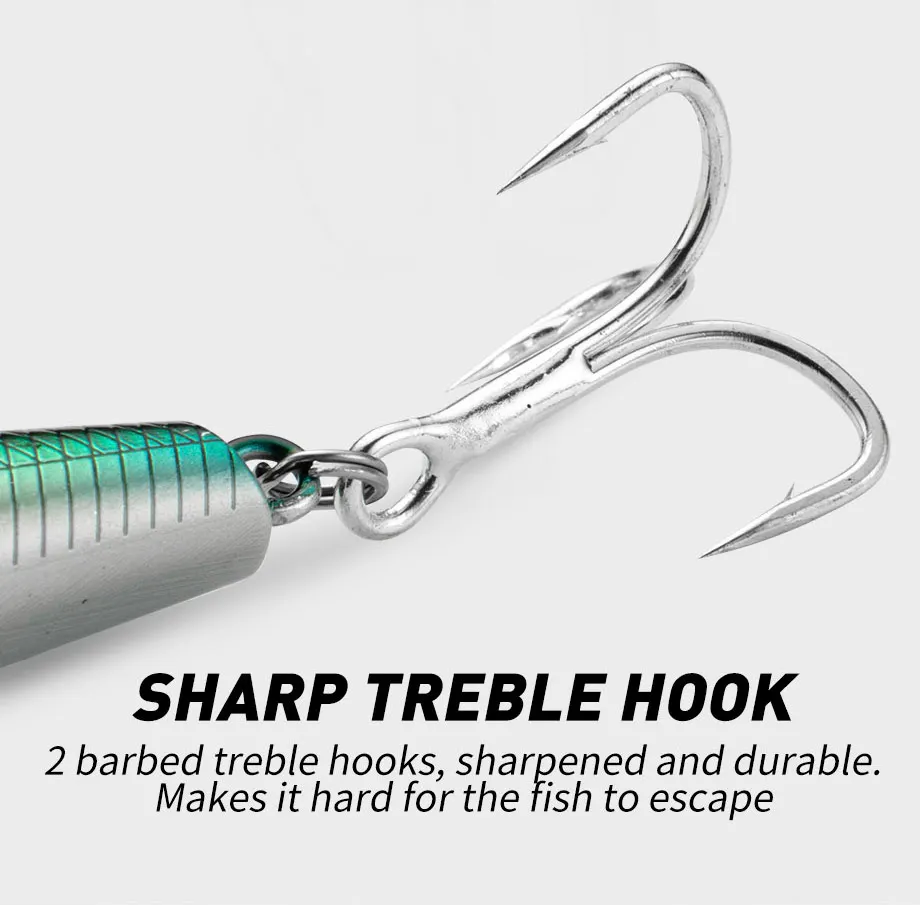 Rediseñado y perfectamente ponderado para lanzamientos largos. Ideal para lubina rayada, Jack Crevalle, Roosterfish o escuela de atún y dorado (Mahi-Mahi, etc...)