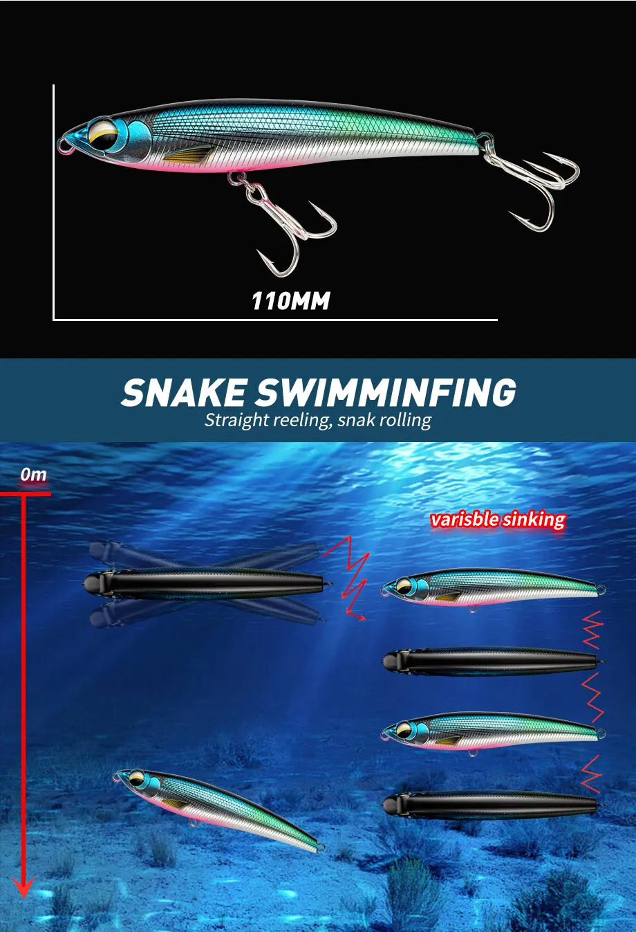 JOHNCOO 110MM 58G lápiz hundido Señuelos de pesca Wobbler Stickbait cebo duro Artificial para atum marino señuelo de pesca GT