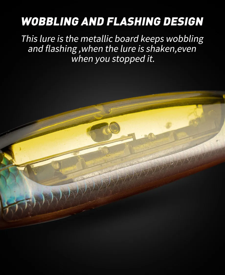 FLUJO DE FLUJO: La hoja dentro del cuerpo ayudará a atraer peces, incluso si el cebo se detiene, debido a la vibración continua de la primavera, la brillantina seguirá parpadeando, acciones de natación realistas, las mordeduras de agua superior más excitadas que jamás experimentarás.
