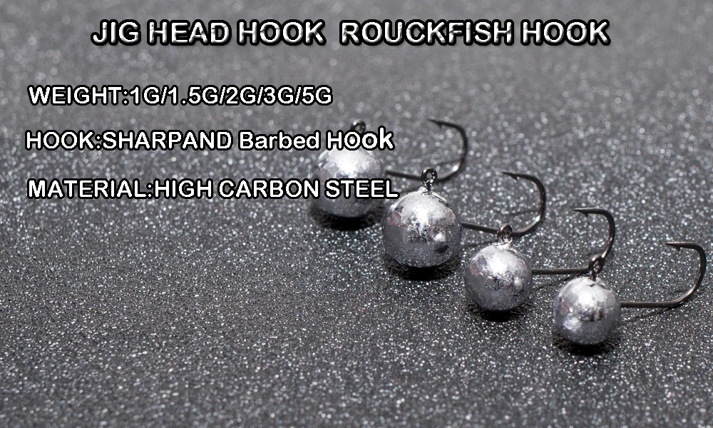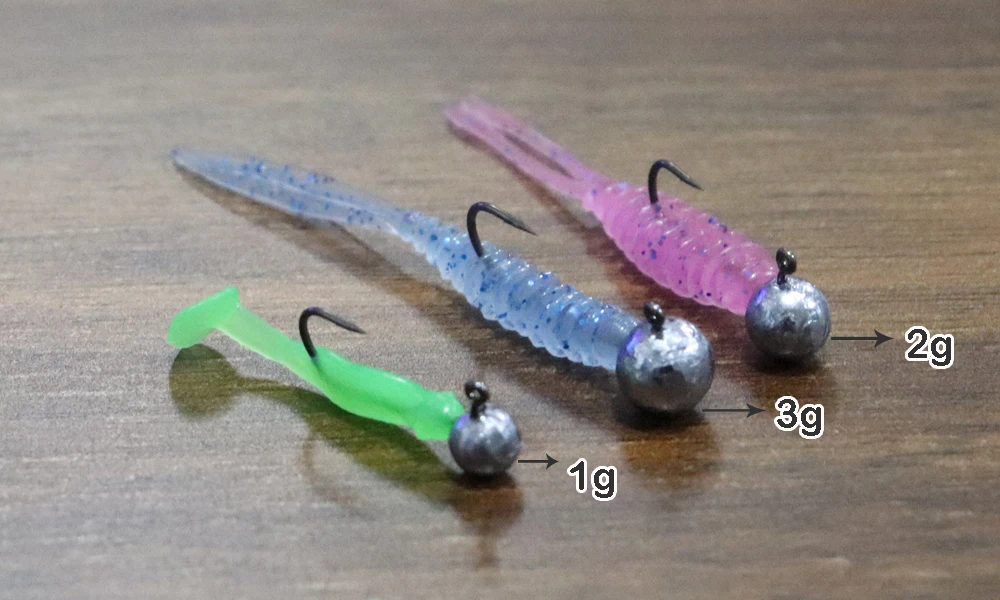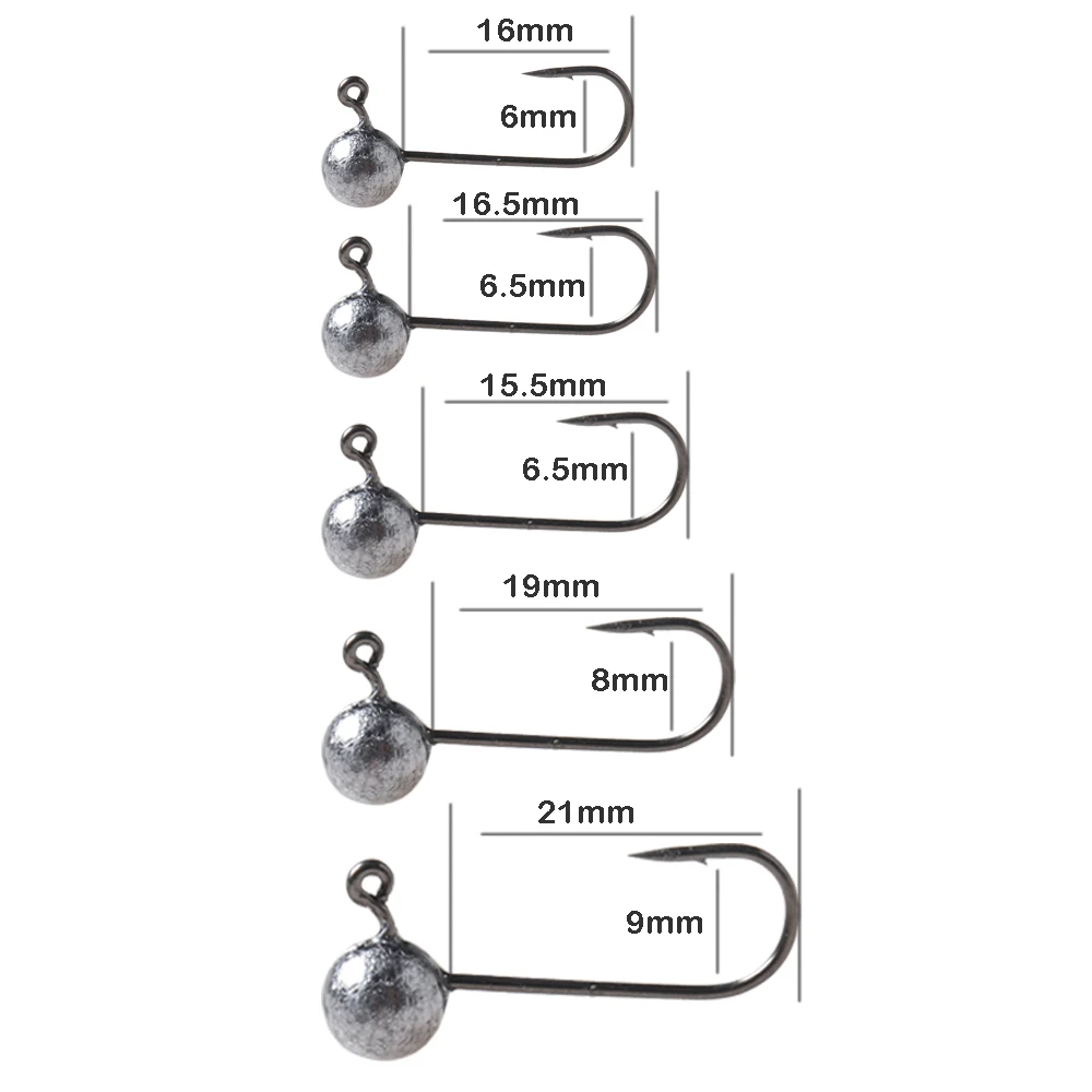 JOHNCOO anzuelo de pesca de gusano suave, 1g, 1,5g, 2G, 3G, 5G, anzuelo de pesca de gusano suave, anzuelo de cabeza de plantilla de 10 piezas, anzuelo individual con púas