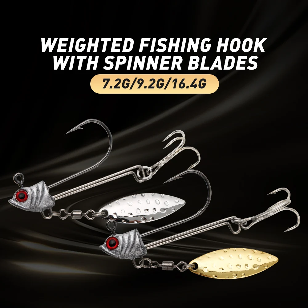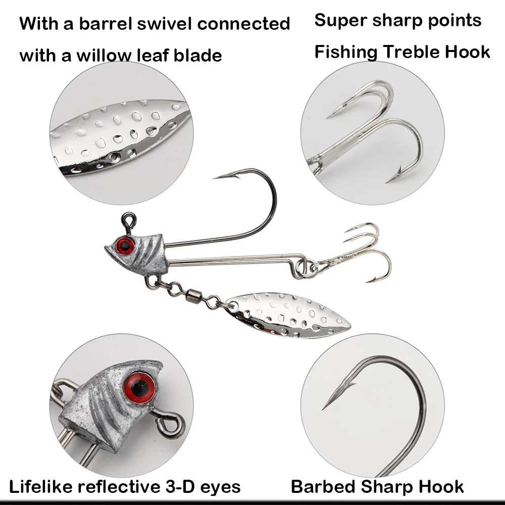 JOHNCOO 3 uds anzuelo con cabeza de plantilla 7,2g 9,2g 16,4g anzuelos ponderados con hoja de sauce dorada/plata para señuelos de pesca suaves