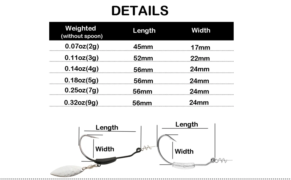 JOHNCOO 4 Uds 2g 3g 4g 5g 7g 9g gancho de manivela cuchara de Metal lentejuelas agregar peso Señuelos con gancho de púas de bloqueo giratorio ganchos de desplazamiento