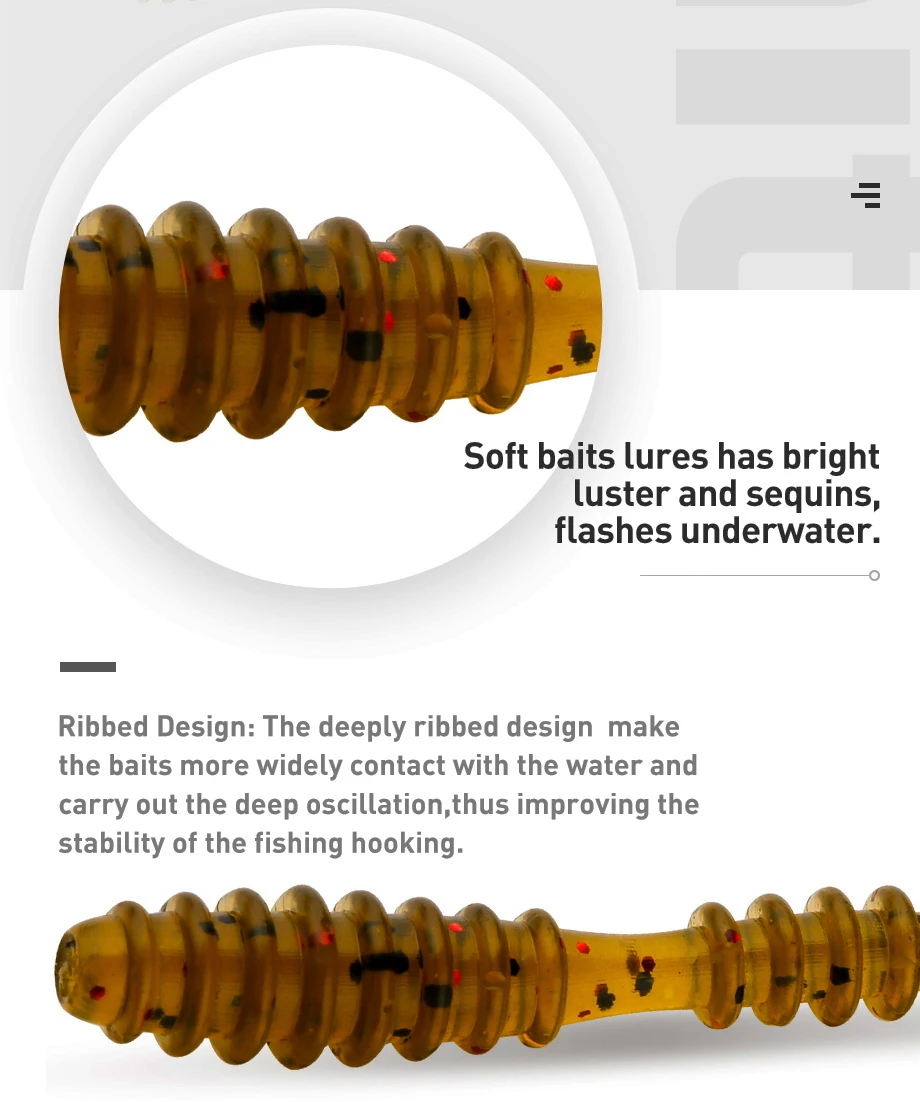 4. Fácil de colocar: Pesca estos con un jighead, o aparejo como un rig de tiro directo, Gema Rig, Carolina Rig. Adecuado para varios tipos de peces, por ejemplo, pez gato, perca, lubina, Lucio, trucha, muskie, walleye, etc., opciones ideales para los entusiastas de la pesca.