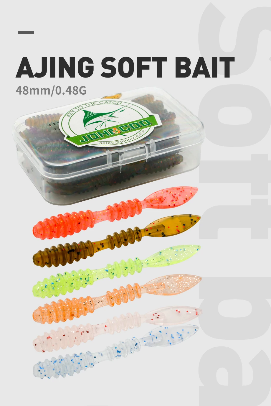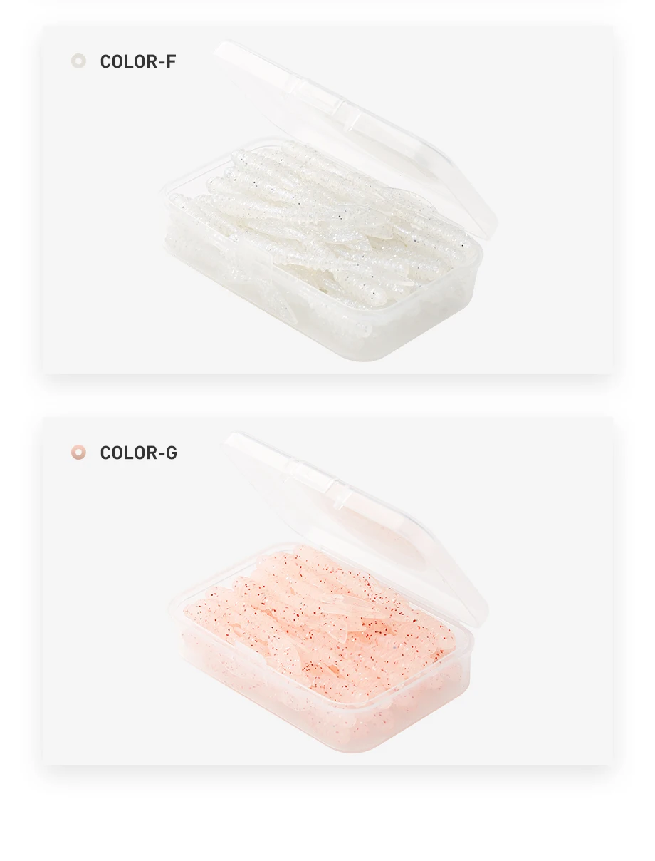 JOHNCOO 40 piezas de señuelos blandos, cebos blandos de gusano de trucha, 48mm 0,48g, gusanos de mar artificiales, lombriz de tierra, Pesca, Señuelos blandos