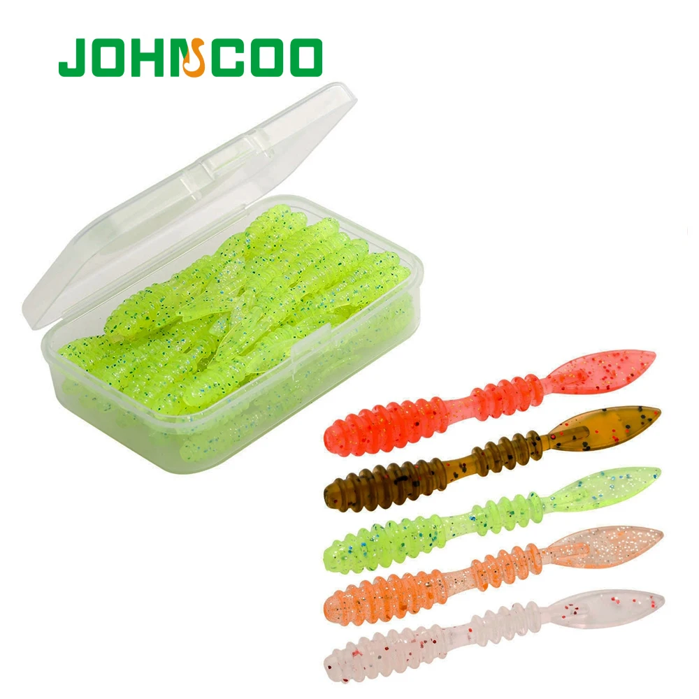 JOHNCOO 40 piezas de señuelos blandos, cebos blandos de gusano de trucha, 48mm 0,48g, gusanos de mar artificiales, lombriz de tierra, Pesca, Señuelos blandos