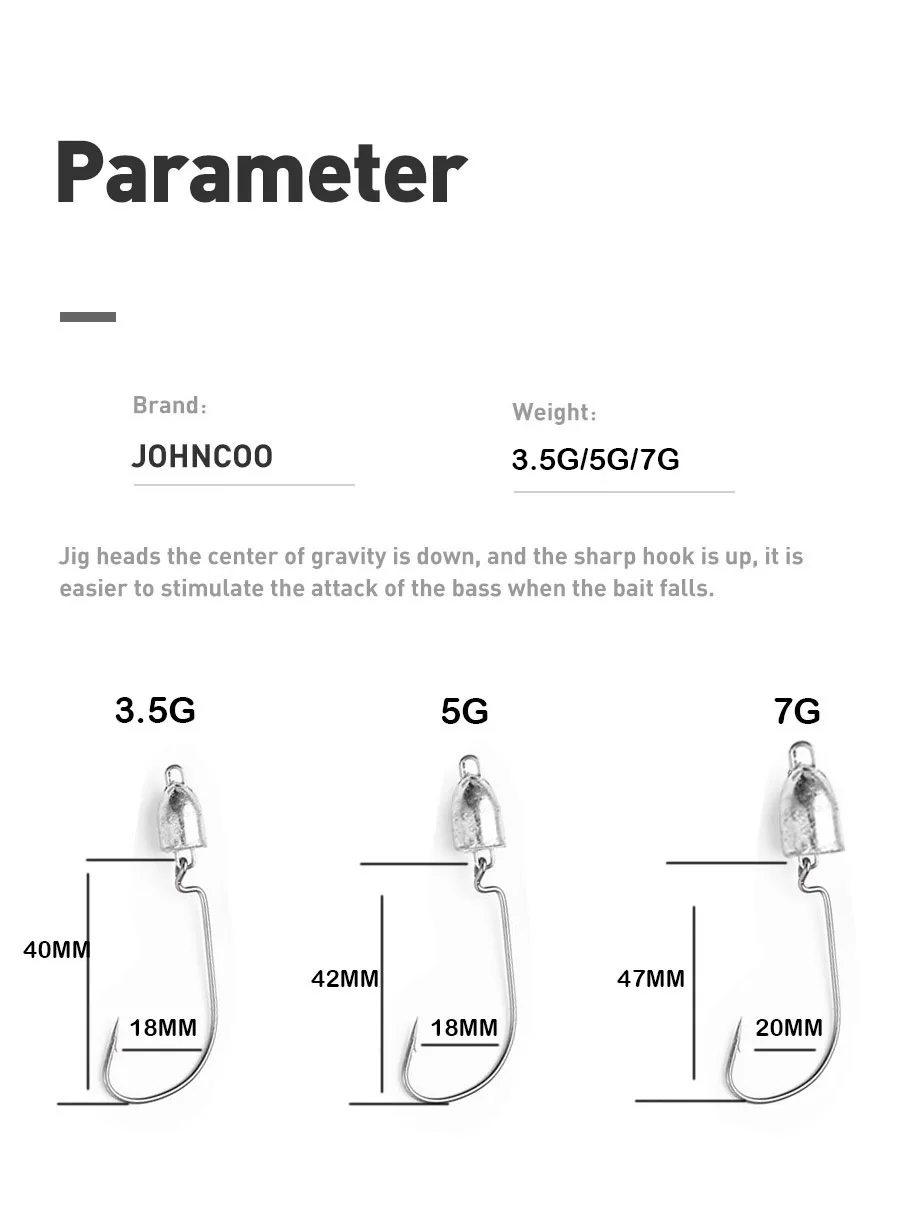 JOHNCOO 5 uds Swing Jig Heads 3.5g 5g 7g Swimbait Wobble Head con gancho para pesca de lubina mejor para caracoles/señuelos de pesca de malezas