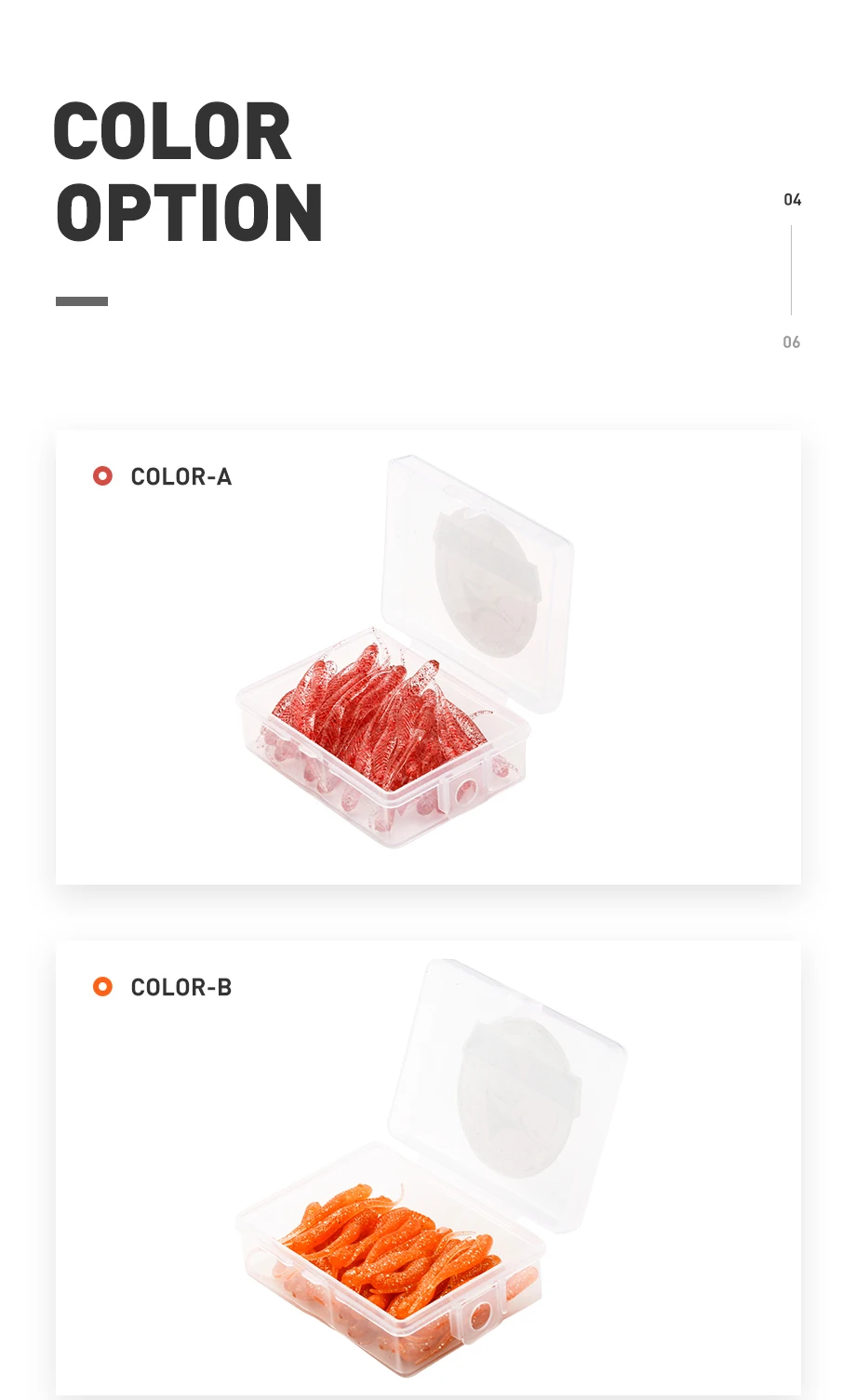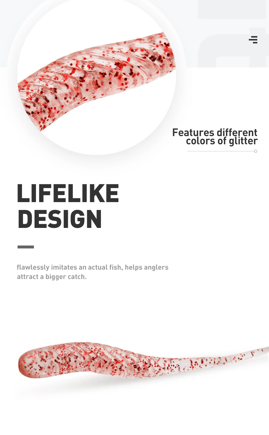 Nuestros señuelos de pesca son realmente tan naturales como si vivían una vez al agua, su textura suave solo atrae a los peces una vez que los peces los vean.Diseño con forma emulacional, crea acciones de natación realistas en el agua, atractivas para los peces. Están preparados para océanos, lagos, ríos, embalses, estanques y arroyos.Varios colores probados y probados lo ayudan a combinar la escotilla de cualquier cuerpo de agua, ideal para cualquier condición de pesca que necesite una acción mejorada. Brillo colorido: presenta diferentes colores de brillo, refleja la luz desde todas las direcciones para atraer mejor a los peces y provocar más golpes.TAIL ALTAMENTE ACTIVA: una cola altamente activa, que produce una acción de natación natural a la que los peces simplemente no pueden resistirse.ColorC, ColorD: Luminoso