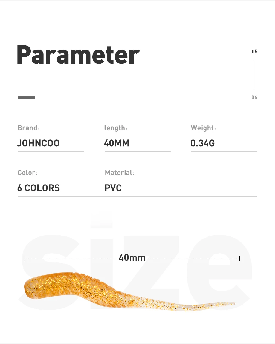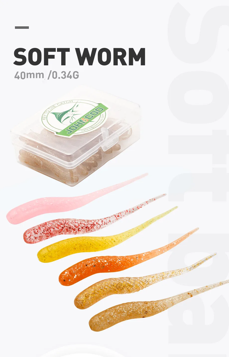 JOHNCOO 50 Uds señuelo de pesca pez roca cebo suave 40mm 0.34g silicona lubina roca Swimbait Jig señuelo cebos de plástico gusano