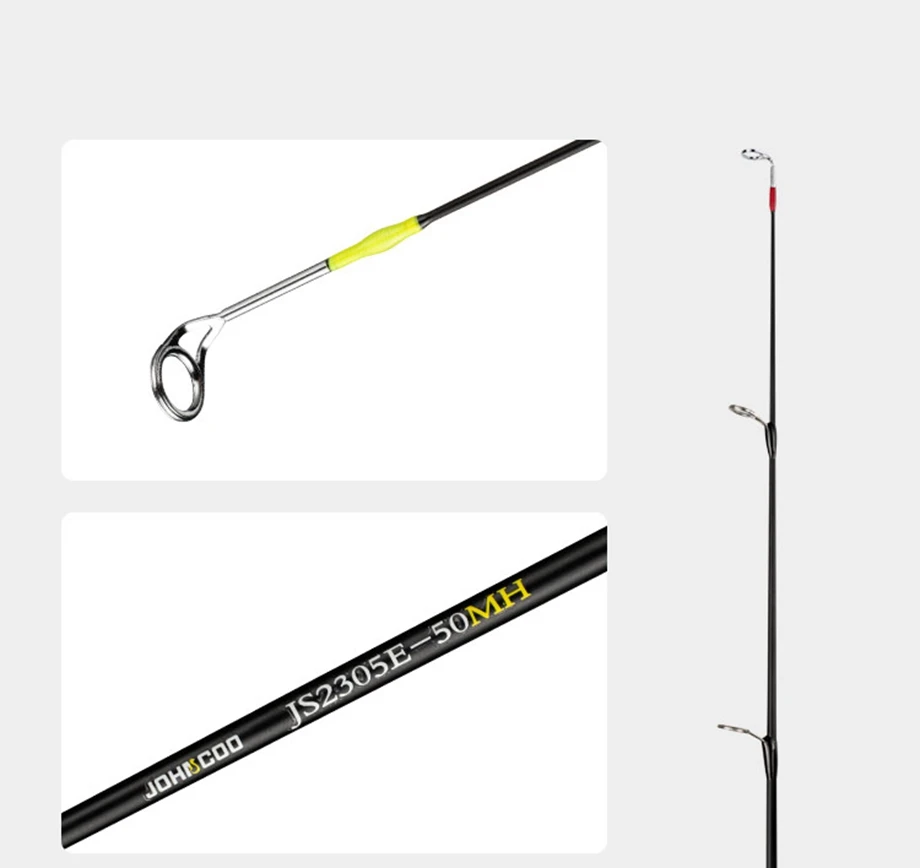 【Alta visibilidad】La caña giratoria liviana y portátil tiene una punta de detección de mordida roja/amarilla brillante, verá la más mínima mordida fácilmente incluso en condiciones de poca luz.La punta roja detecta la picadura sutil y la transmite visualmente rápidamente.