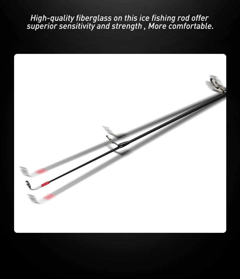 【Materiales de alta calidad】 Esta nueva caña de pescar en hielo está hecha de materiales de alta calidad, resistentes y duraderos, de larga vida útil, muy cómoda de usar y puede crear un ambiente de pesca perfecto.