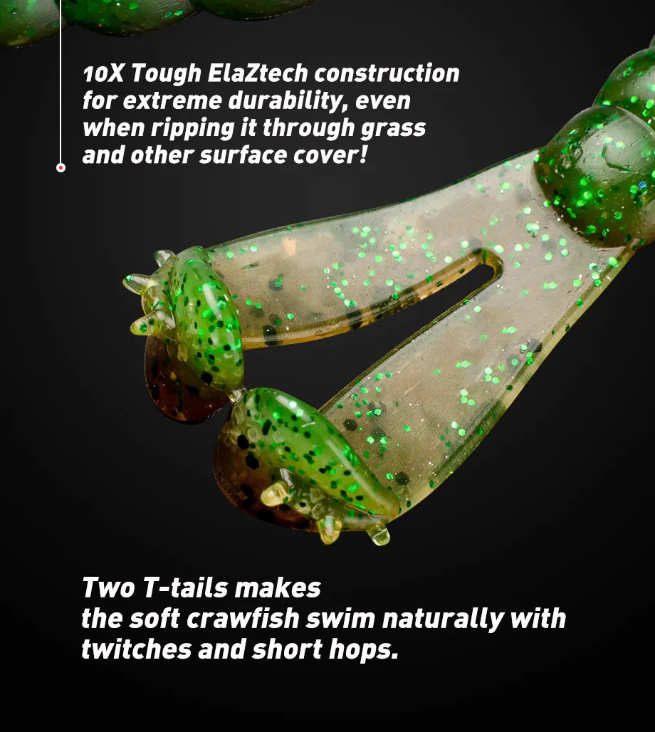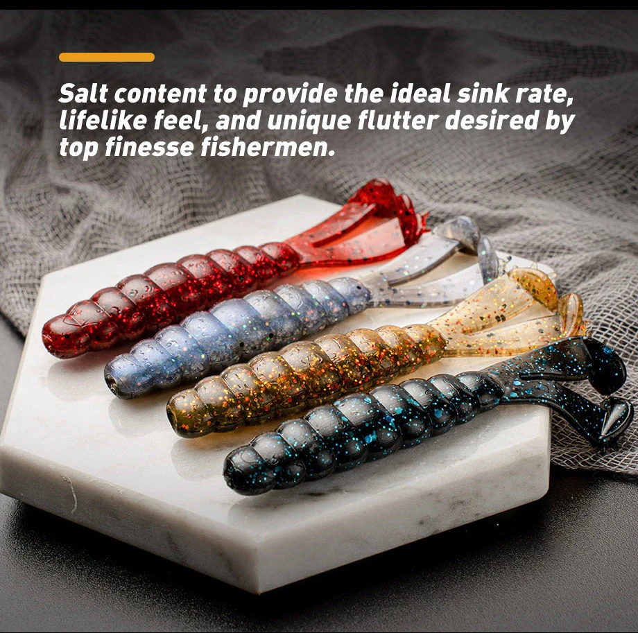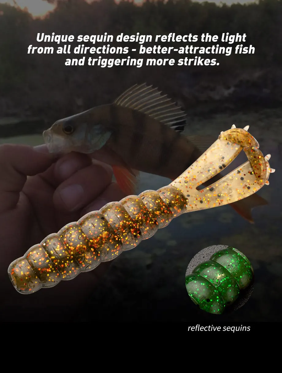 Dos colas en T: los swimbaits de plástico blando cuentan con dos colas en T de alta acción, ayudan a batir y vibrar con un golpe duro, brindan una acción que atrae a los peces que el lubina tiene problemas para resistir