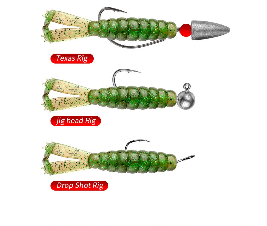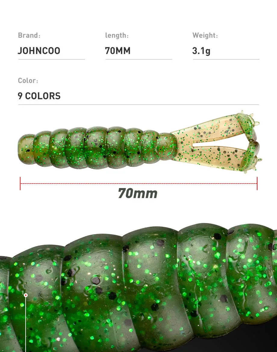 JOHNCOO 7cm 3,1g TPE dos colas en T cebo suave señuelo de pesca 6 uds cebo de gusano Artificial Wobblers natación Ned Rig