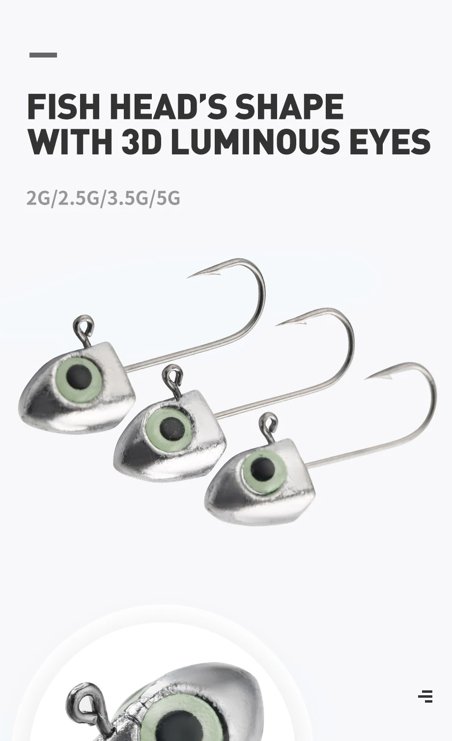 1. DISEÑO ÚNICO: El diseño único de cabeza de pez, la cabeza en forma de pez y los grandes ojos luminosos en 3D imitan un pez cebo. Los ojos brillarán en la oscuridad, más atractivos para el objetivo, también buenos para la pesca nocturna.