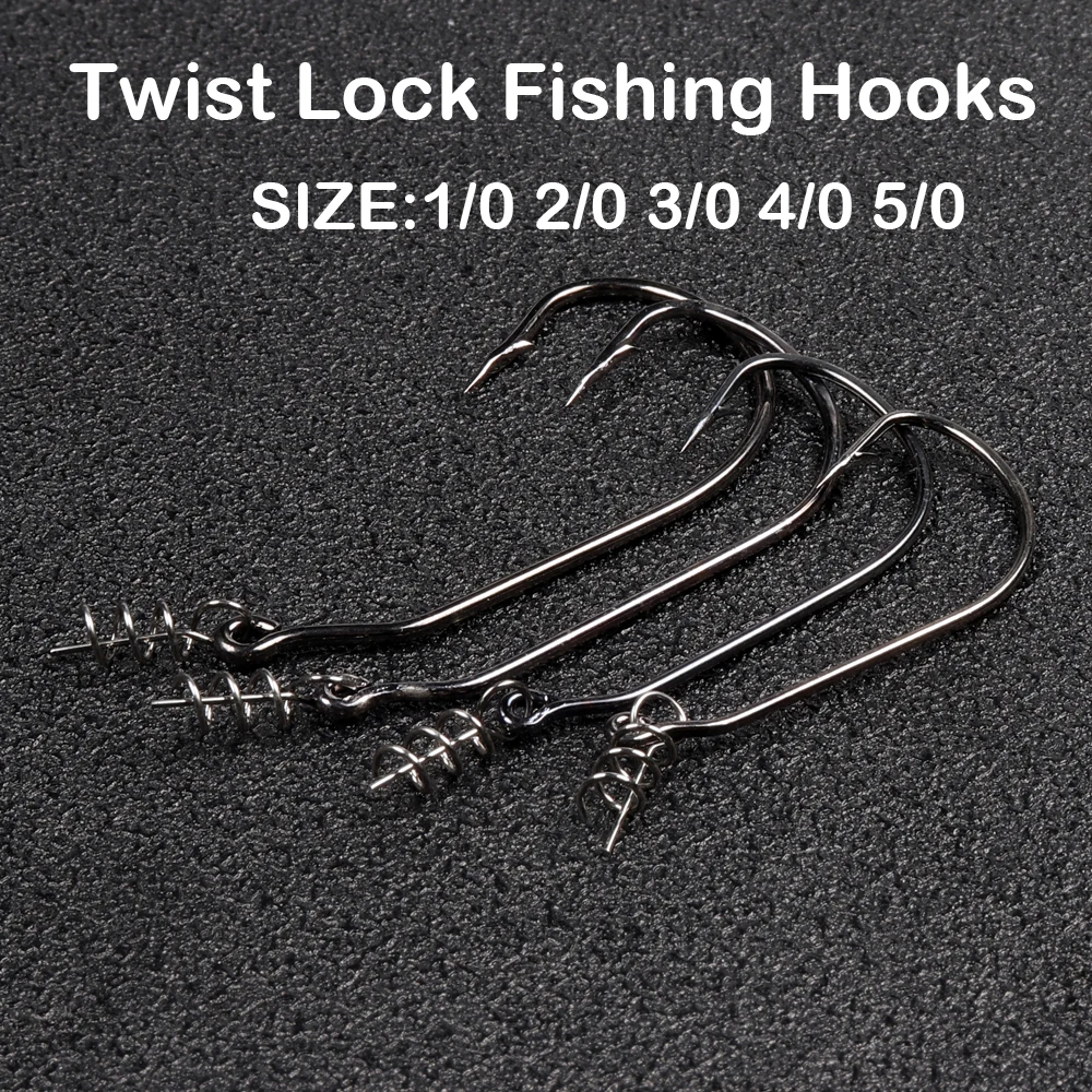 20 Uds. Anzuelos de pesca con cierre giratorio, Kit de anzuelos de gusano con pasador de centrado para cebos de señuelos blandos