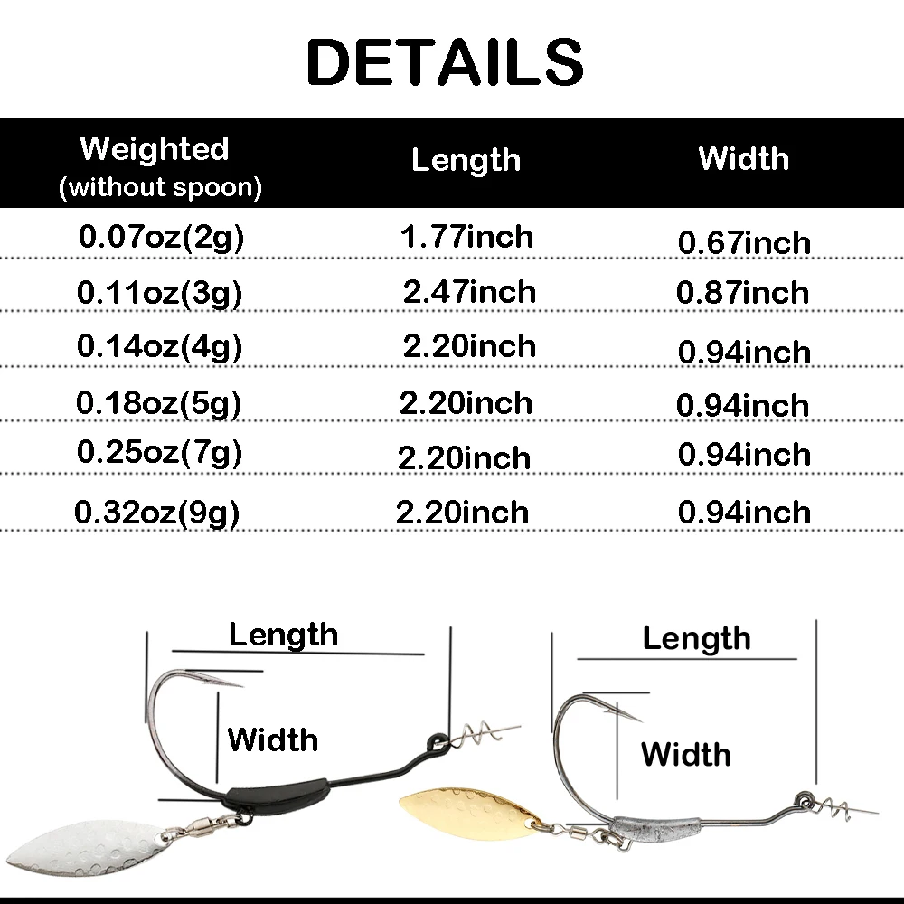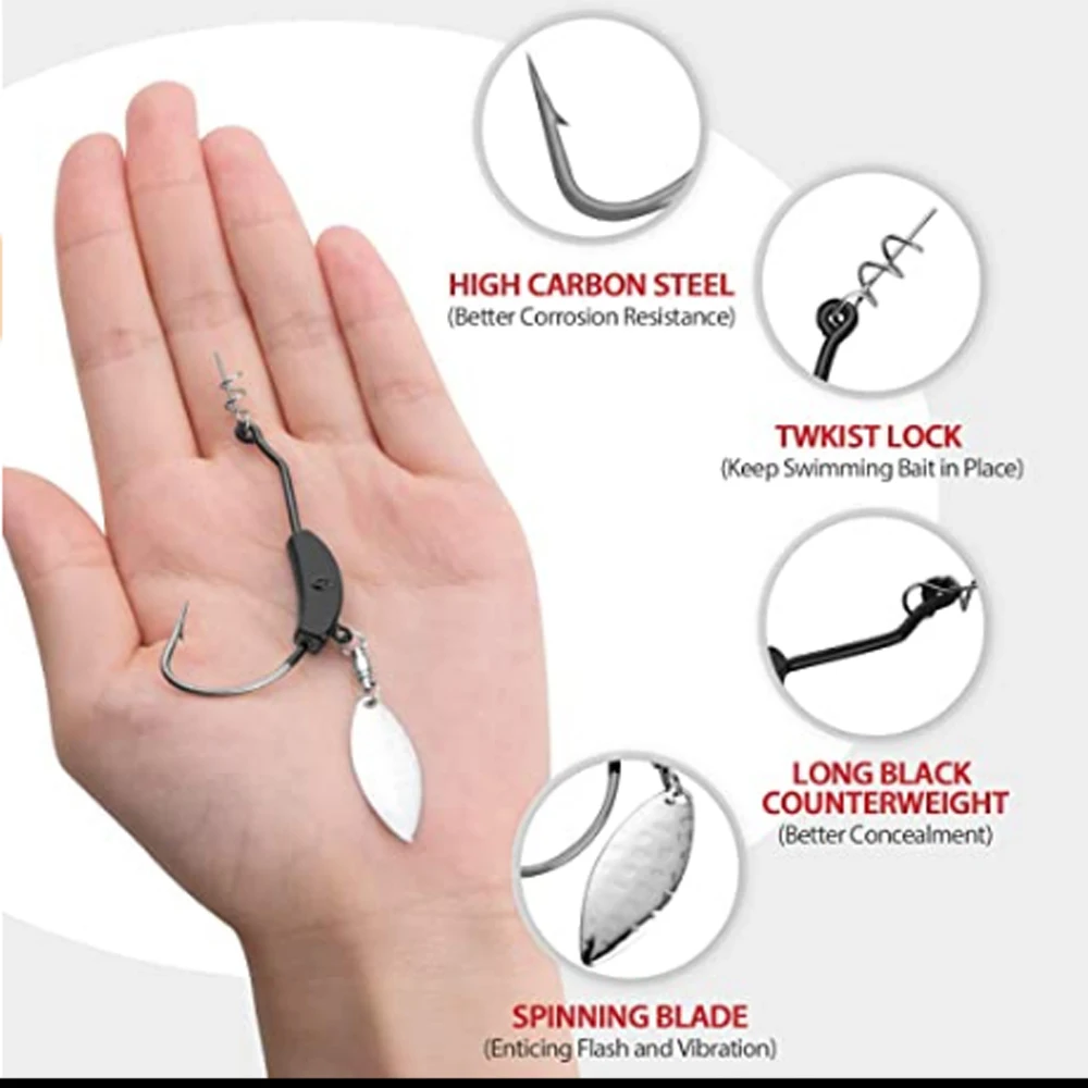 DISEÑO DE DETALLE ÚNICO: El gancho de swimbait negro tiene una mejor ocultación.La combinación de contrapeso largo y bloqueo de tornillo puede hacer que la postura de natación del cebo sea más natural, ya sea un swimbait suave, flukes u otros plásticos de natación.