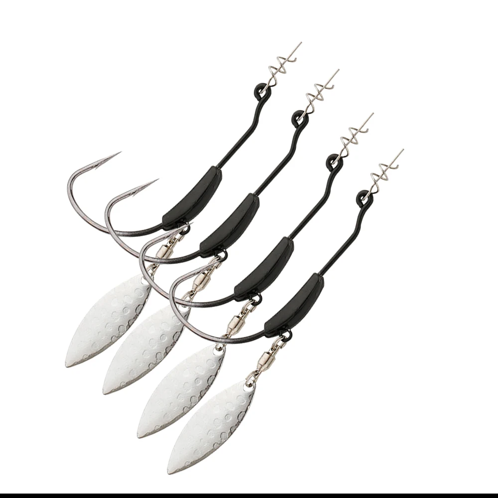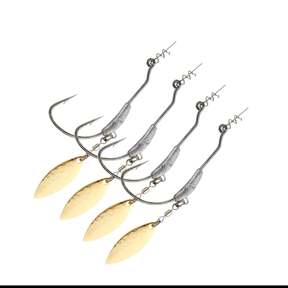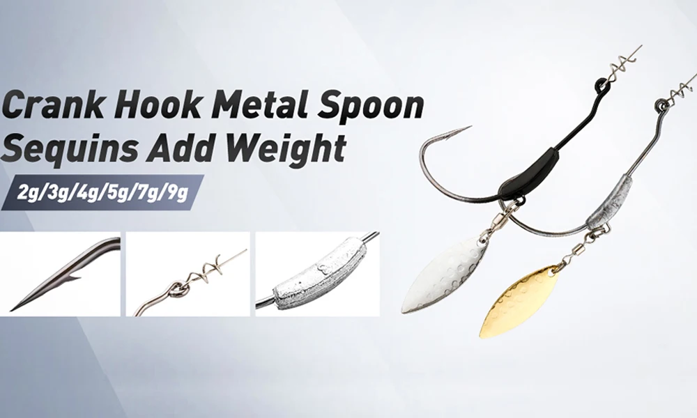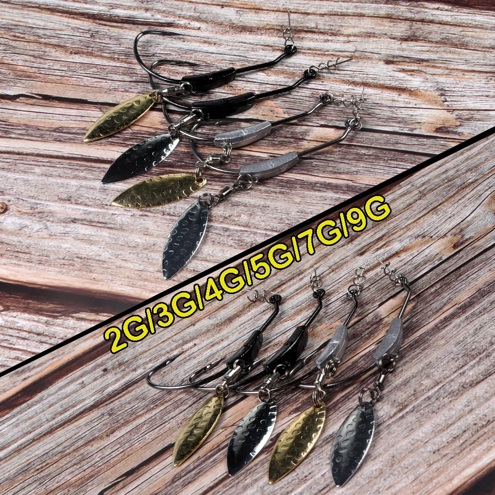 JOHNCOO anzuelo de pesca desplazado con manivela, anzuelo con cabeza de plantilla para señuelo de gusano suave, anzuelos de pesca con púas de 2-9g, 8 Uds.