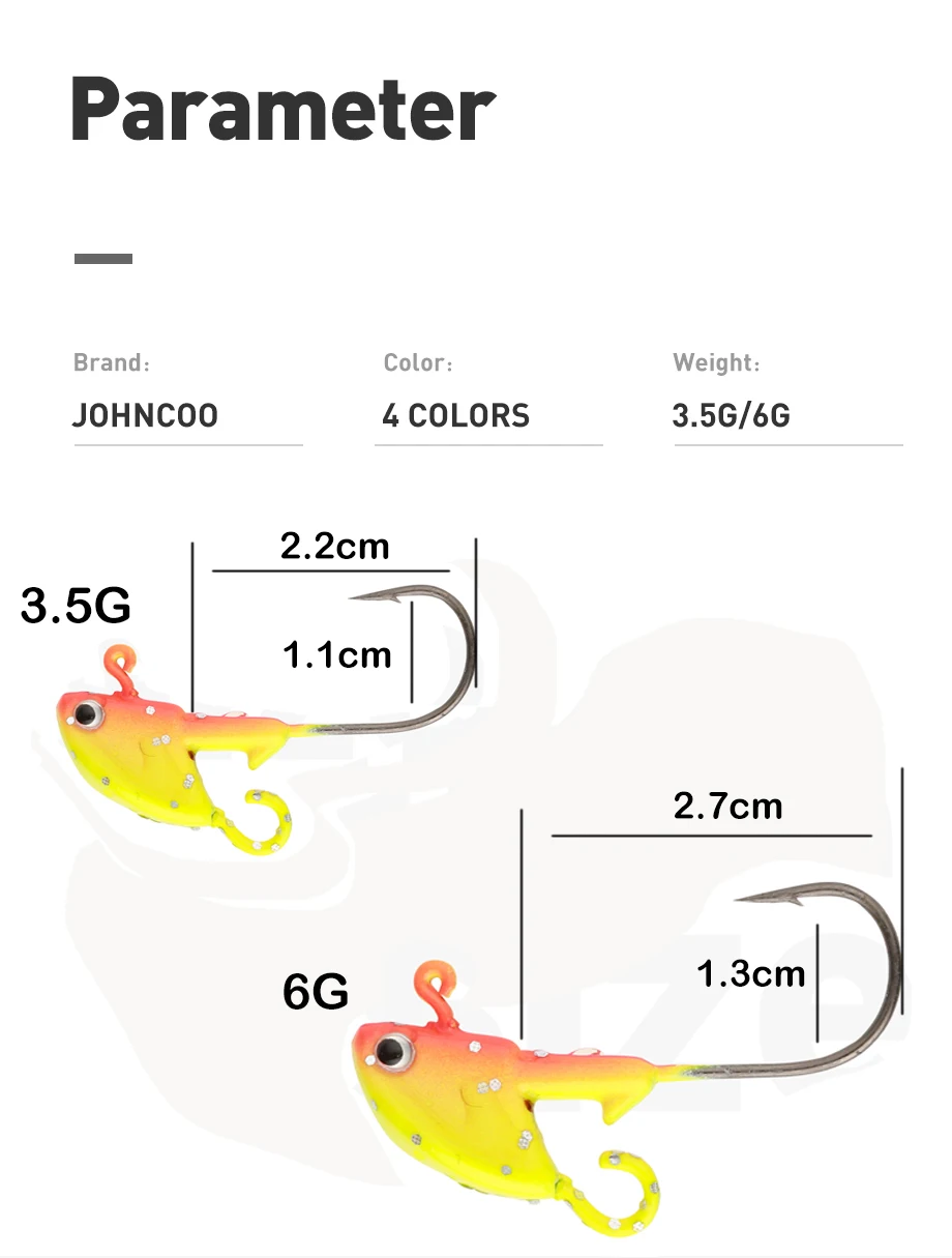 JOHNCOO Anzuelo de Pesca de Metal Multicolor, Anzuelo Suave de Gusano, Anzuelo con Cabeza de Anzuelo, 5 ", 3,5g, 6g