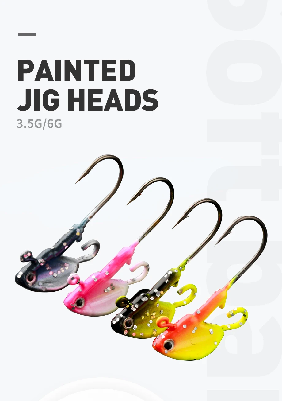 CABEZAS DE PLANTILLA DE DISEÑO HAED ÚNICO: Moldeadas con un diseño de cabeza único, recuperación suave en todos los entornos inferiores. Funciona muy bien y atraviesa rocas y madera sin engancharse fácilmente. Fondo anticolgante, el diseño especial de gravedad específica hace que los cabezales de plantilla siempre se mantengan en la parte inferior. Cabezas de plantilla Underspin se combinan perfectamente con una variedad de remolques blandos.