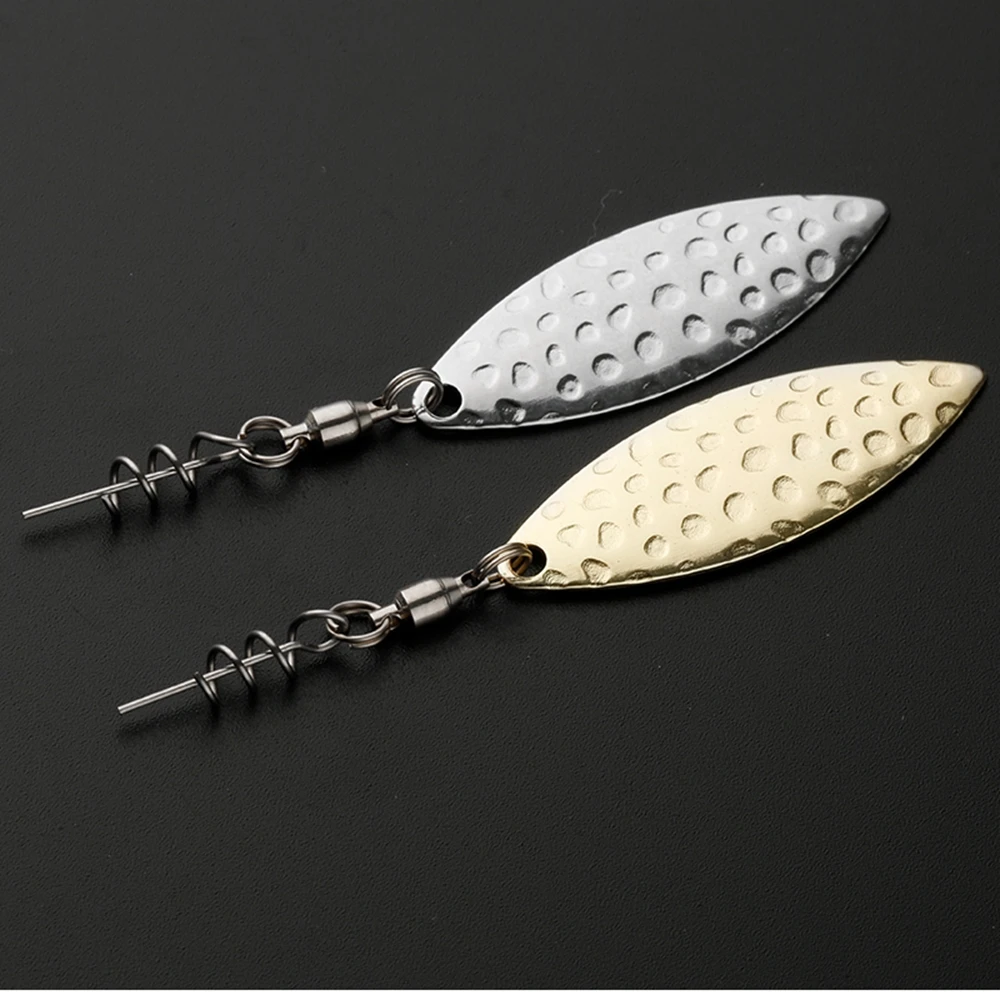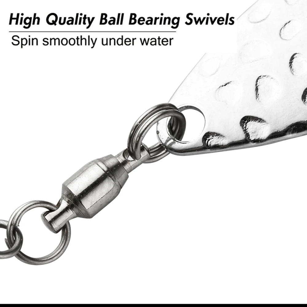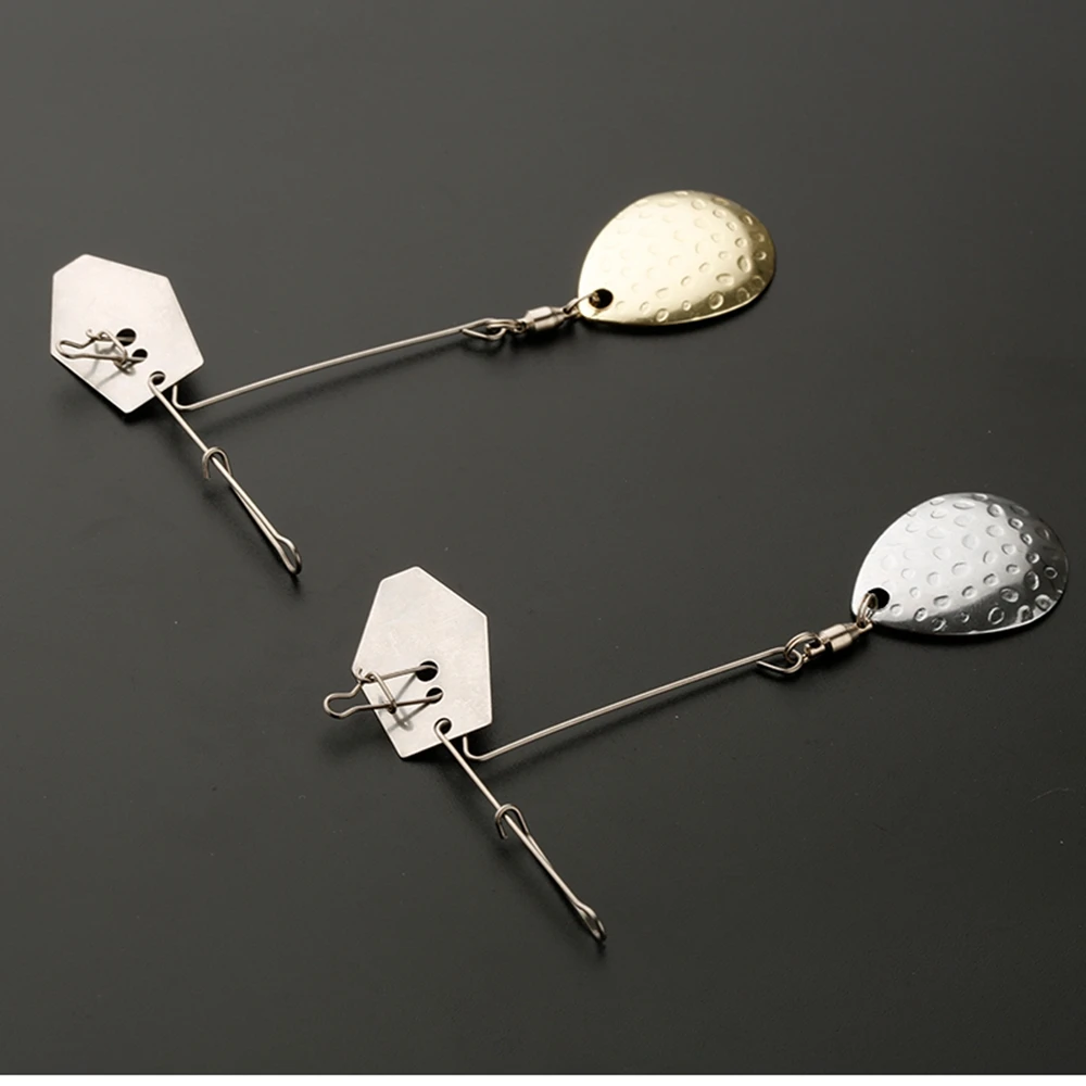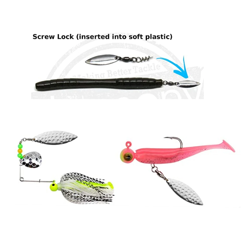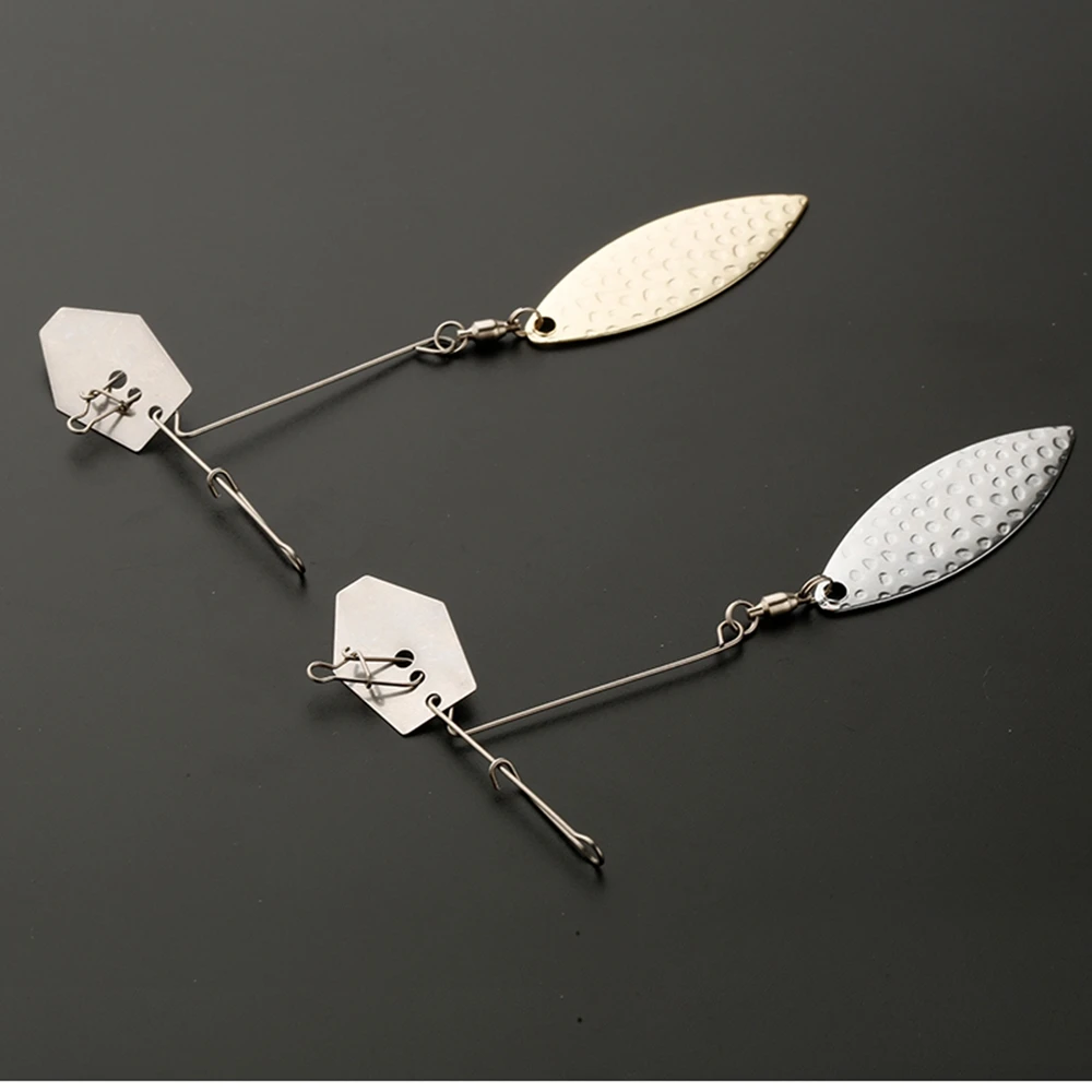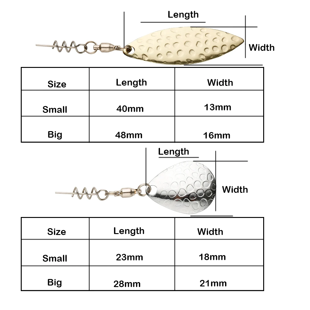 Las cuchillas doradas/Plateadas añaden un Flash más atractivo: La hoja gira y vibra a medida que el cebo viaja a través del agua, dándole una acción y destello adicionales. Las cuchillas de Colorado producen más flash y vibración que realzan la acción de sus cebos para atraer peces desde mayores distancias.