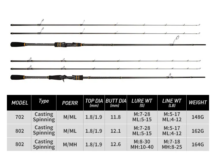 Caña de pescar de refuerzo Johncoo con 2 puntas M/ML 5-28g acción Ex-rápida 2,1 m caña de pescar giratoria y caña de Baitcasting de alta calidad