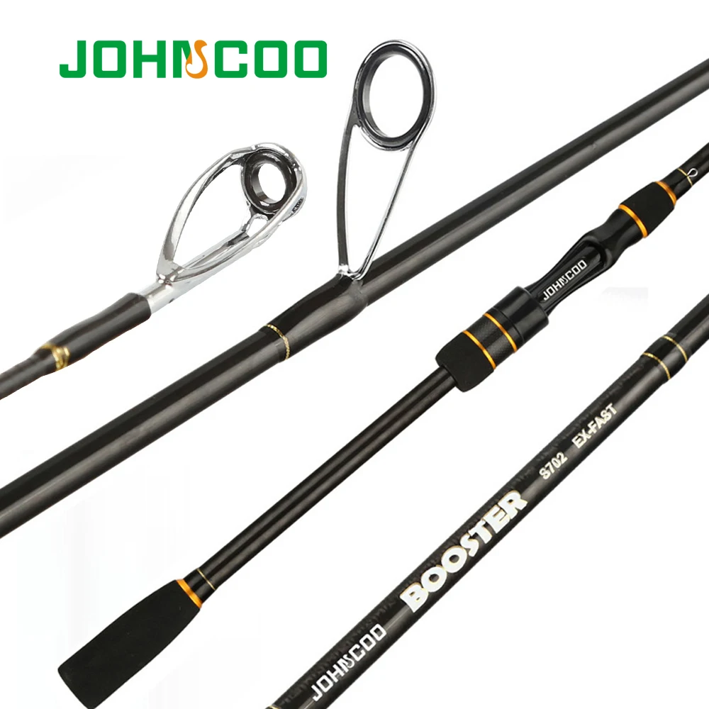 Caña de pescar de refuerzo Johncoo con 2 puntas M/ML 5-28g acción Ex-rápida 2,1 m caña de pescar giratoria y caña de Baitcasting de alta calidad