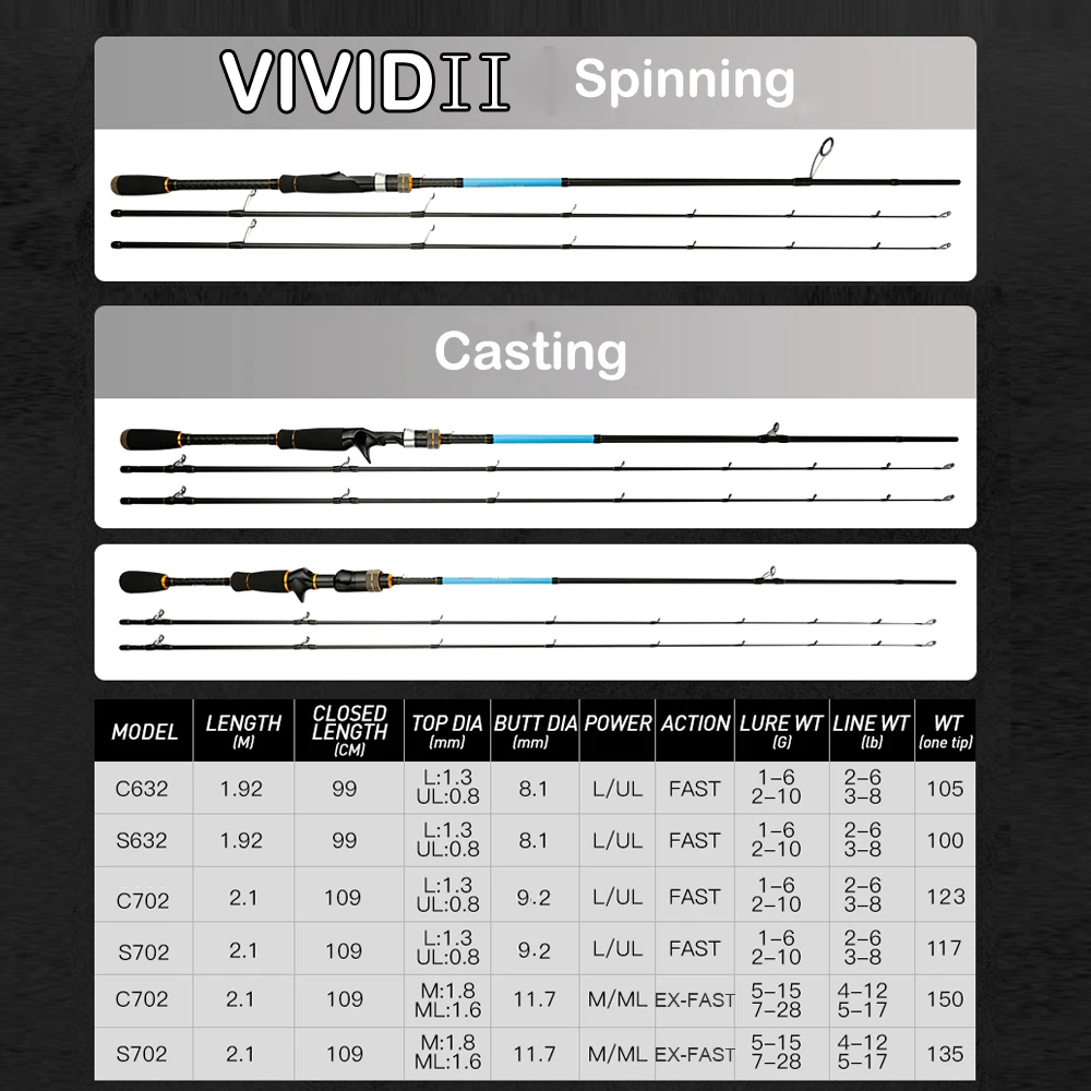 Variante: Color:VIVID 2 SPinning length:1.92m(UL L) Ships From:China