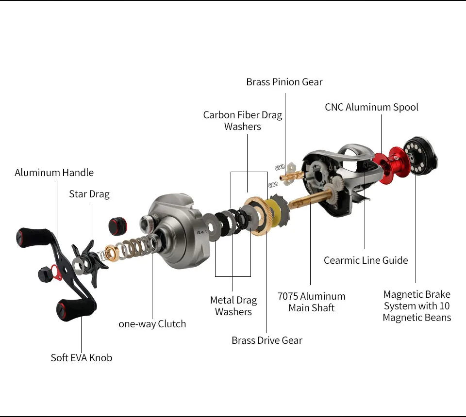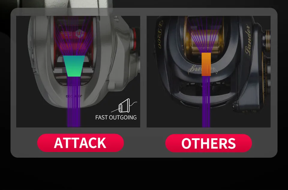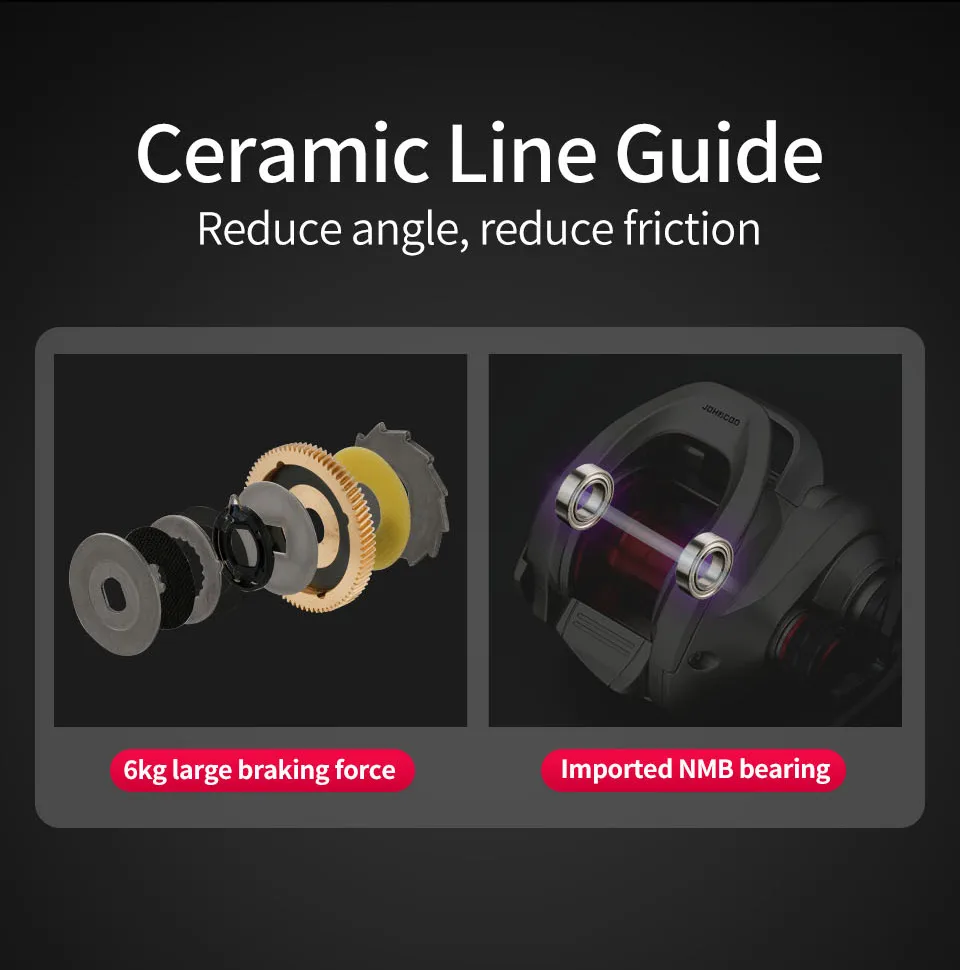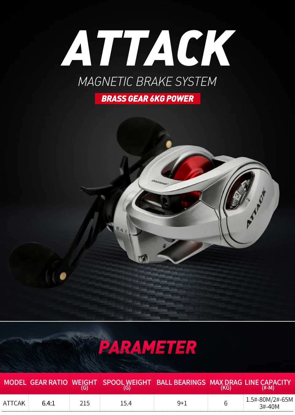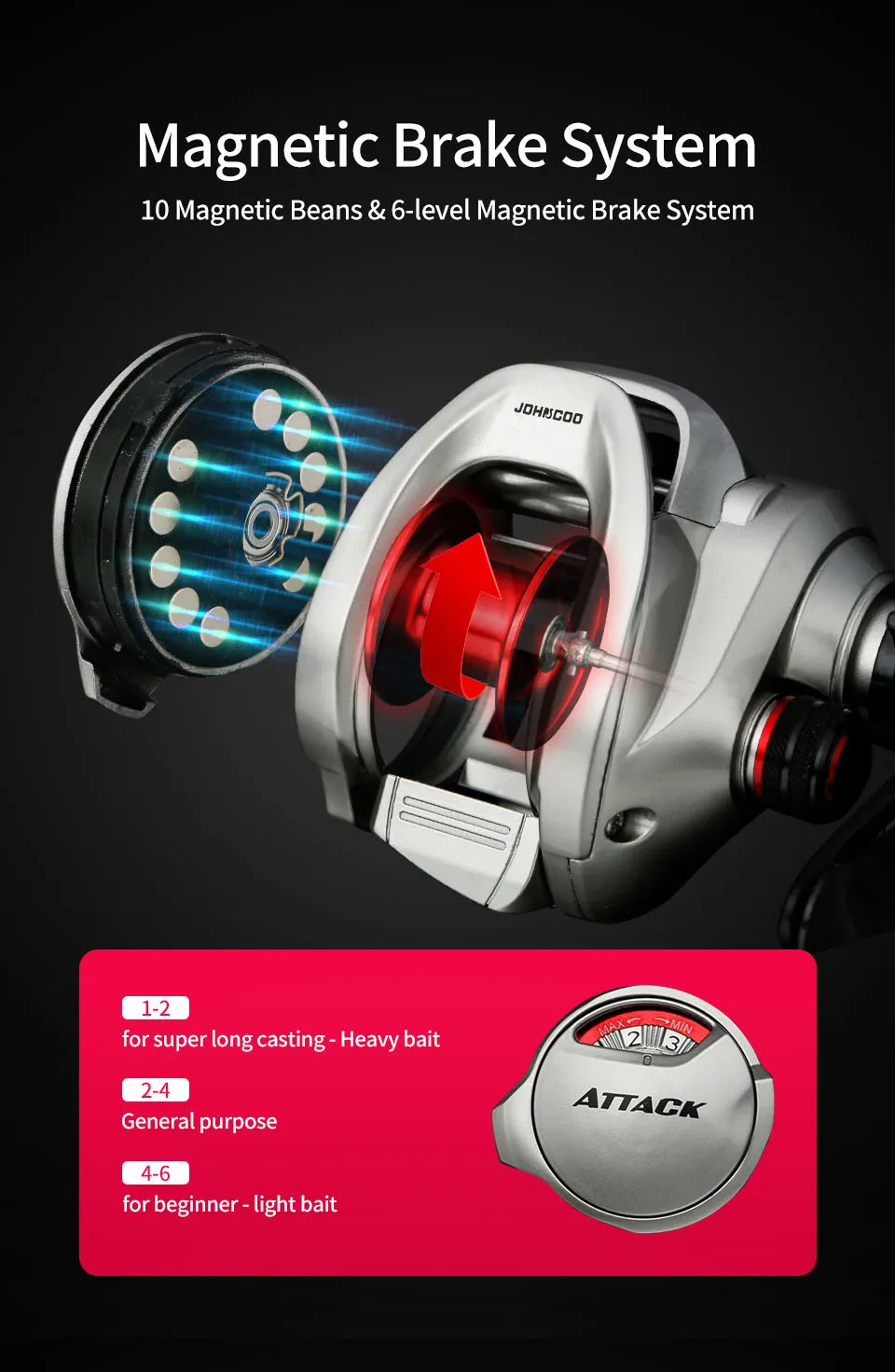 Carrete de fundición de cebo de agua dulce JOHNCOO Attack 6kg Sistema de freno magnético de arrastre máximo 9 + 1 BB 6,4: 1